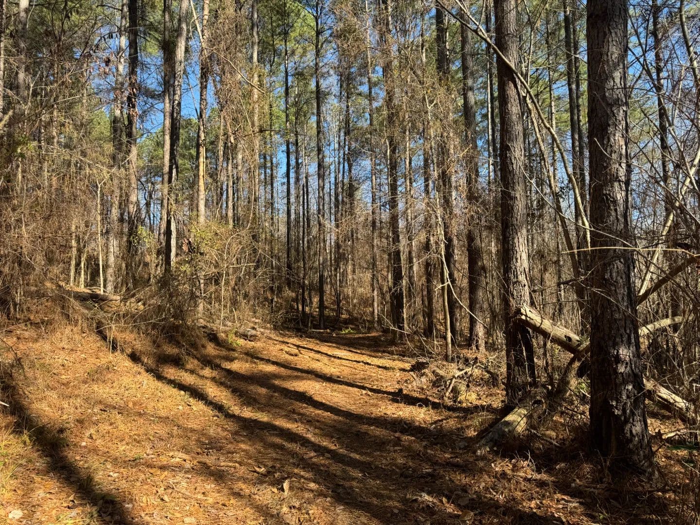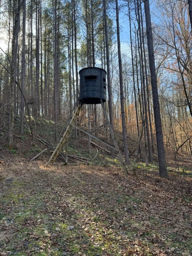 The land is well-developed with two established food plots, mature pine timber, and an excellent internal road system. Trail camera history confirms consistent activity from mature whitetail deer and turkeys. Hunting improvements include a shooting house, ground blind, and ladder stand, making this property truly turnkey. With road frontage and a private, secluded setting, this tract offers an outstanding small-acreage hunting and recreational opportunity.