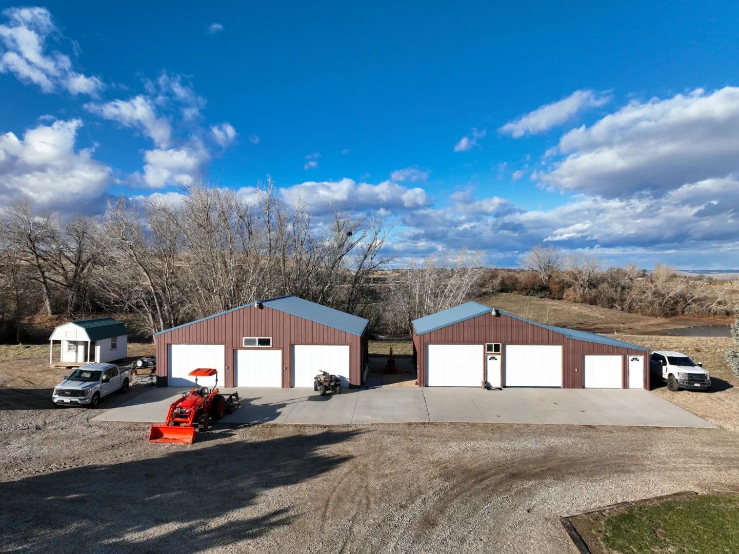 The 1,984± square foot oak wood home is built with 2×6 walls and features three bedrooms, two baths, terracotta tile floors, a large kitchen and great room area, and a metal roof. The additional home is newly refinished, offering one bedroom and one bath with an unfinished upstairs that could be two more bedrooms. The shops are every mechanic’s and sportsman’s dream, with room for toys, equipment, projects, or a business.