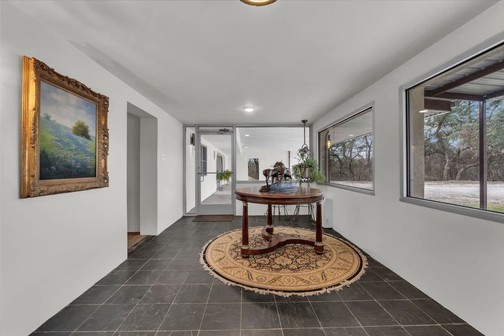 Inside, generous living spaces feel warm and inviting, with hardwood and slate flooring, abundant natural light, and flexible areas suited for entertaining or everyday living. Advanced air filtration and whole-home water purification systems further enhance comfort and wellness.