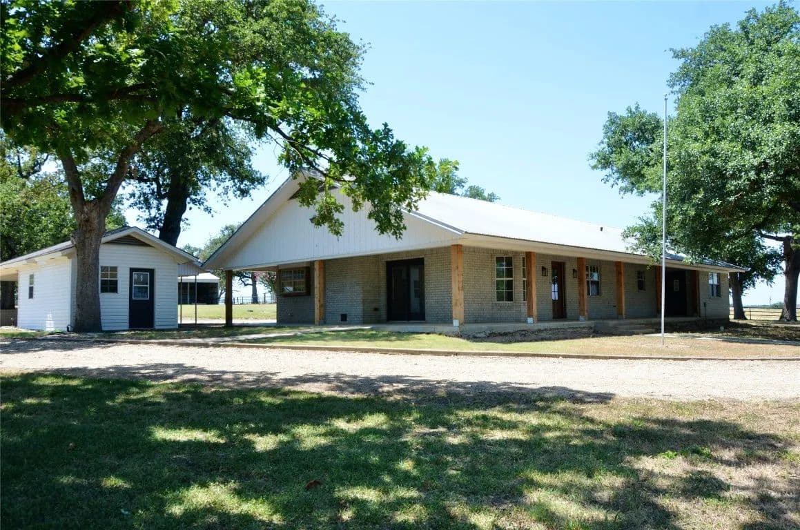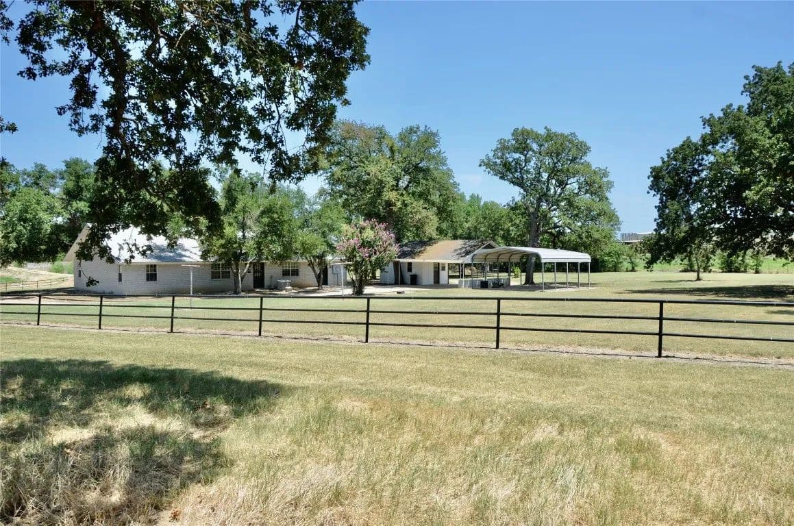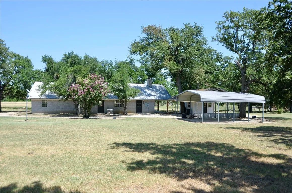 Charming ranch-style home on 12.22 acres, with an Ag exemption in place. This beautifully updated residence showcases exquisite taste throughout. A circular driveway leads to a spacious two-car drive-thru carport, with a garden or workshop conveniently located to the left. An additional carport offers shelter for another vehicle or a perfect spot for family barbecues. Perched on a gentle hill, you'll find two vintage barns nestled among majestic old oak trees, adding to the property’s appeal. The entrance features a pipe gate with a cattle guard, welcoming you to a stunning pond that enhances the landscape around the home. This property is a must-see!