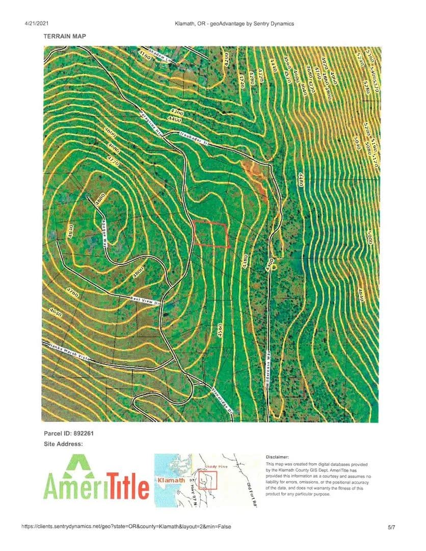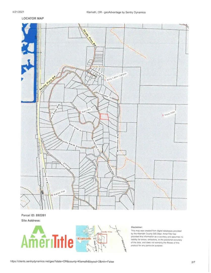 5-acre hillside lot on the eastern slope of Paradise Hill Subdivision, a gated community just north of Klamath Falls, with mountain views. Annual HOA dues were $ 438 for the 2022 year.