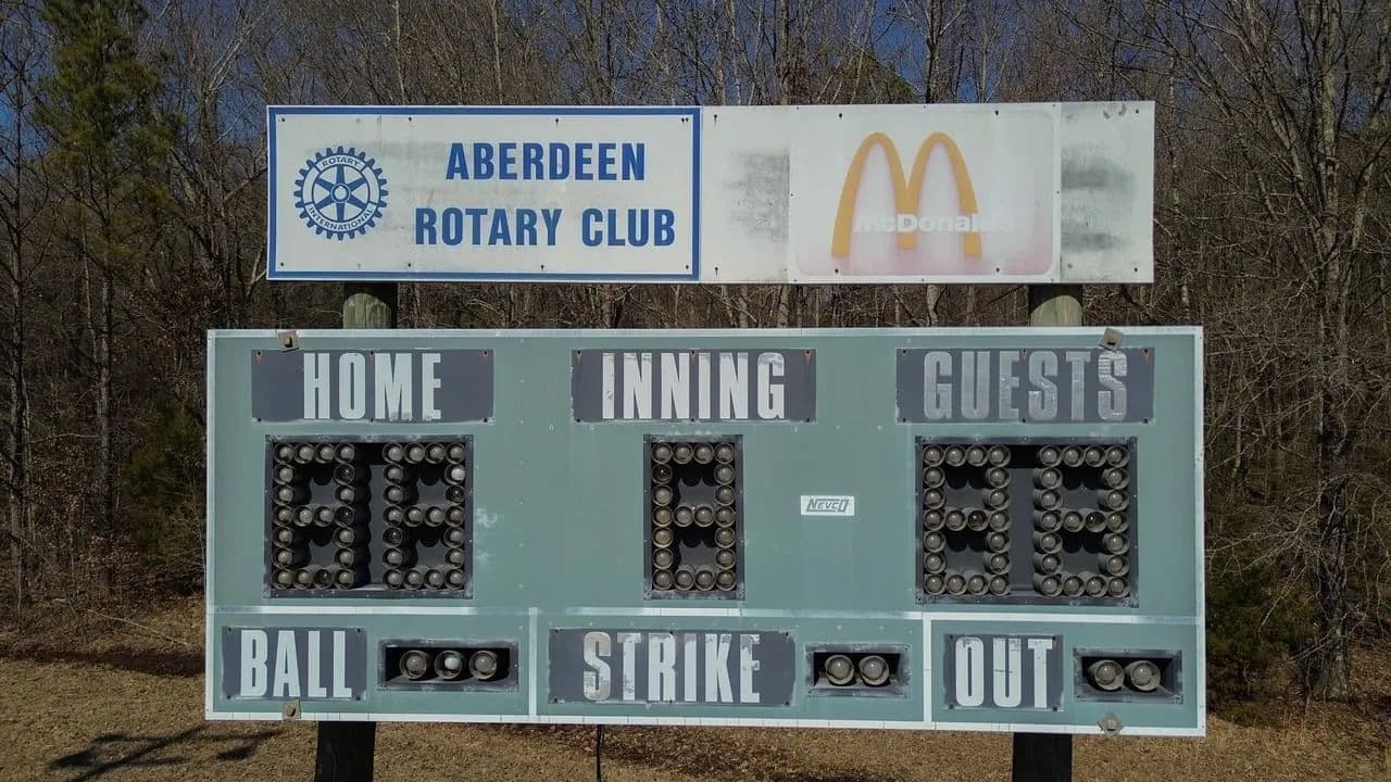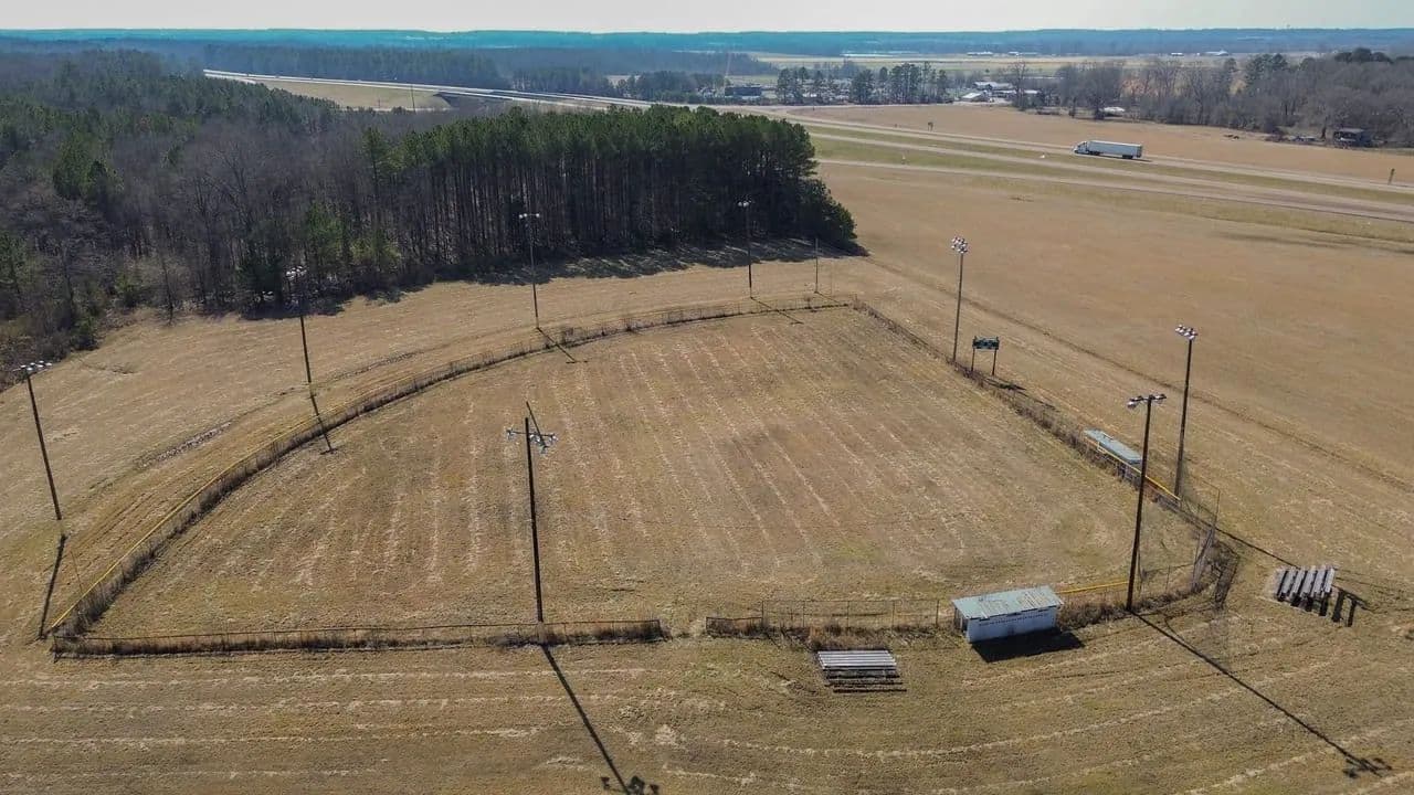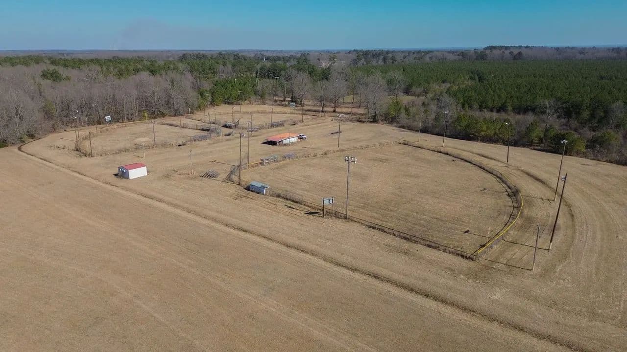 This property features three baseball fields located in Aberdeen, Mississippi, offering a unique recreational opportunity right in town. Each field is equipped with stadium lighting and its own scoreboard, allowing for night games, tournaments, and extended use.