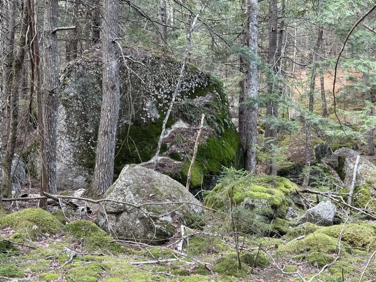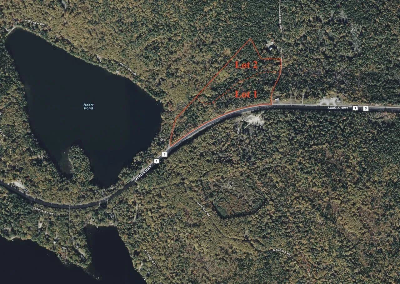 Large undeveloped lot with approximately 1700' on Acadia Highway. Large eratic granite rocks and 1500' of stream frontage down a small brook on the border of the property. Sloping lot from Eben's Trail Road down to Heartview Circle Road. Can be purchased with MLS #1624640 for an additional 9 acres to make a total of 23 acres