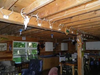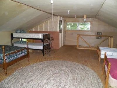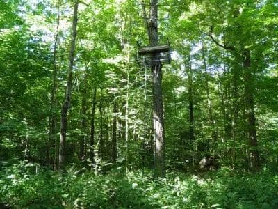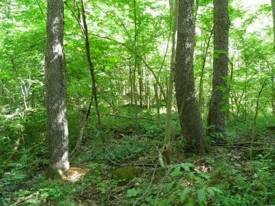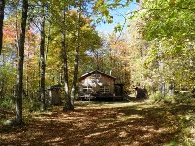 NYS Hunting Property with camp adjacent to Wolf Lake State Forest for Sale: The wood framed, seasonal hunting camp on this property was built in 1999 atop of treated power pole piers using full dimension, rough cut lumber. It is a sturdy, two story structure with ~1,426 sf of living space. Both levels have open floor plans. The exterior is sided with pine board and batten and the roofing is painted steel. The walls and roof are well insulated but the floor is not. A large porch allows family and friends to gather outdoors when the weather is fair to enjoy the sounds and sites of the hardwood forest that surrounds them. It is off the grid and in the woods. Propane gas lanterns provide light at night, however modern conveniences can be 'plugged in' as it is wired for a 120 volt generator. There is no water or septic and there is an outhouse. A roof rain water collection and storage system provides an ample amount of water for dishes, cleaning and showers during the camping or hunting season. Heat is provided by a local, Amish made wood stove. Vehicular access is from the seasonally maintained portion of the Ames Road, ~150 yards past the plow turn around location, through a gate and across a 1 acre field and food plot, where deer are commonly sighted.The property is mostly covered with hardwood forest. It was last harvested about 25 years ago. It is predominately in a pole stage of development, but hundreds of small and medium size sawtimber trees are scattered throughout the property. Major tree species include sugar and red maple, basswood, black cherry, red and white oak, elm, beech, ash, yellow and gray birch and hickory. A small, year ‘round stream flows diagonally across the property from northeast to southwest, through beaver ponds and meadows, on its journey to the Oswegatchie River. Granite ridges define the terrain and seem to present the biggest challenge to traversing the property by atv. I grew up hunting mostly deer, grouse and waterfowl in this region and have always been fascinated by the 'untamed' character of this area. Deer, bear, coyote, bobcat, turkey, grouse and snowshoe hare are all native to these woods and the annual deer hunt is usually successful.The bonus of owning this property is its proximity to the 4,316 acre Wolf Lake State Forest which virtually expands your recreational acreage by this amount. The State borders the parcel on the northern and western boundaries. Not only does it expand the owners hunting range, with 3 good size lakes (Huckleberry, Wolf and Moon) it offers some great hiking, snowshoeing, trapping, primitive camping and bass fishing opportunities. Another option for fishing and boating would be the Oswegatchie River which is visible south of the Ames Road near the property’s entrance. The mineral talc was first discovered in this area in the 1870's and two or three exploratory pits, a mine shaft and portion of a quarry can be found on the property just west of the driveway to the camp. As a precaution to unknowing parties that may be inspecting the property, the mine shaft has been identified with orange flagging. The owner currently owns and pays property taxes on the mineral rights for the larger parcel (148.4 acres) and the current holder of those rights on the smaller parcel (21.4 acres) is unknown. It may take the average hunter or outdoor enthusiast a lifetime to explore all the back country available to them from this location…but can you imagine the stories they would tell and how much fun it would be?