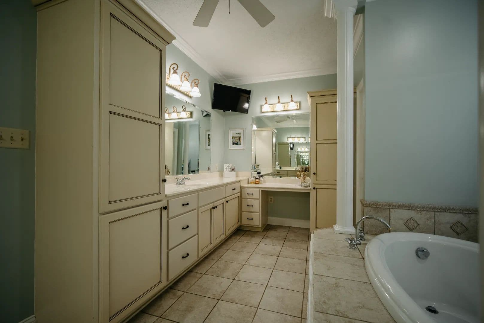 One of the standout features of the home is the large primary suite, designed as a relaxing retreat at the end of the day. The primary bathroom is spacious with a jacuzzi bathtub, perfect for unwinding, along with his-and-her vanities that provide plenty of space for daily routines. Additional bedrooms are generously sized and offer flexibility for a growing family or extra storage and workspace.