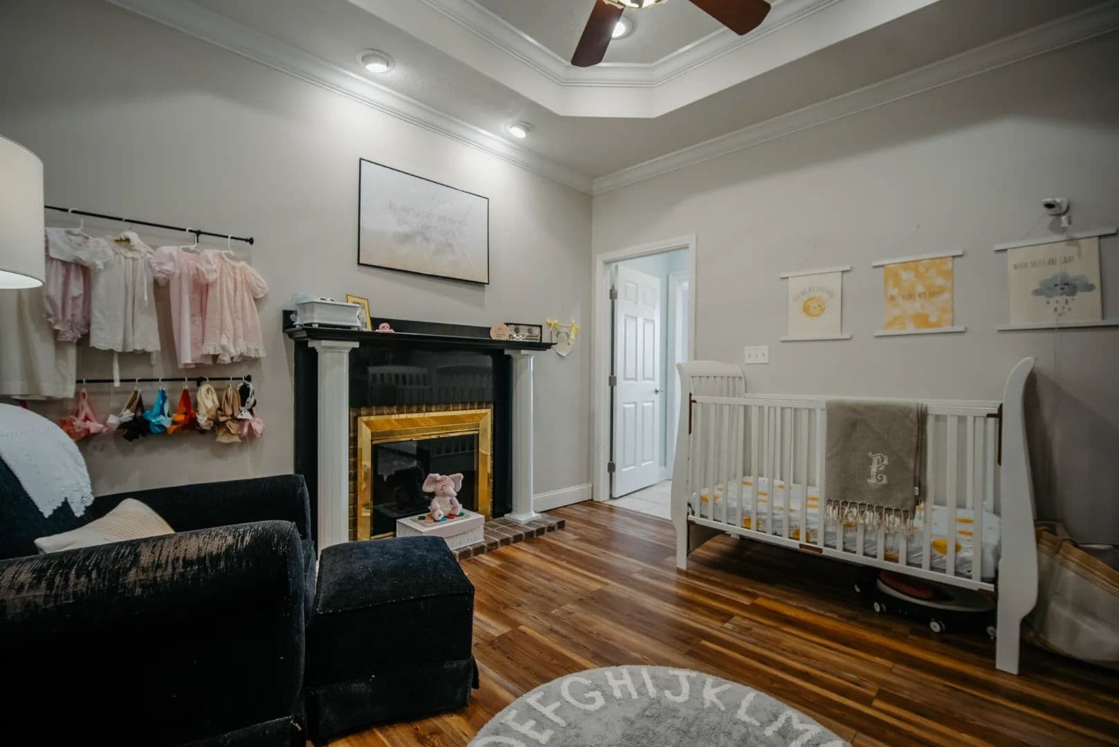The interior finishes are both stylish and durable, featuring luxury vinyl plank flooring and ceramic tile throughout. The living area is warm and comfortable, highlighting a gas log fireplace that adds both charm and a cozy gathering spot during cooler months, while central heat and air ensures comfort year-round.