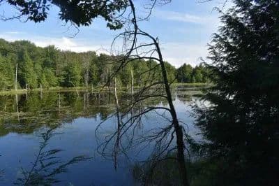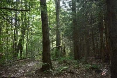 New York wooded land with beaver pond and trails for sale. The property is almost entirely forested with a nice mix of hardwood and softwood species, making it ideal for wildlife of all types. The hardwoods are dominated by soft maple with a mix of hard maple, cherry, beech and birch as well. The softwoods are predominantly hemlock with spruce in lesser quantities. There is currently about 531,550 boardfeet of merchantable timber here making this a great opportunity to enjoy the hunting and recreation while benefitting from timber production long-term.The parcel has numerous internal trails for hiking or ATV’ing, some of which need additional clearing as they have not been used in many years. The trails do provide good access throughout the property and some lead to the large pond complex on the property. The primary pond is about 4 acres in size within the property and extends beyond the boundary onto a neighboring parcel making it seem much larger when viewing on site. There are also a couple of smaller ponds that may fluctuate with the seasonal water table, going from moist open ground to flooded in a short time, making for great duck habitat!The signs of deer, turkey and ducks can be seen throughout the woods and water sections of the property. With excellent access, good areas to build or to pull in a camper, this can be a great multi-species hunting and recreation property. In addition, the area snowmobile trails are nearby in West Leyden (1.5 miles) and NYS Forest is also close on Kirk Road within 2 miles of the property!All rights owned will transfer and the boundaries are blazed and painted red and easily followed. The property has 25 feet of road frontage on Osceola Road. Electric is available across the road.