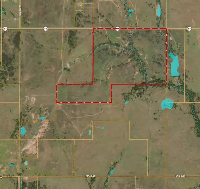 The farm features a mix of native grasses, including bluestem and Bermuda pastures that provide solid forage potential. Several pockets of timber and scattered brush offer excellent wildlife habitat, with the Mud Creek corridor supporting strong populations of deer, turkey, and other game. It's truly a turnkey hunting property with multiple natural travel routes and bedding areas.