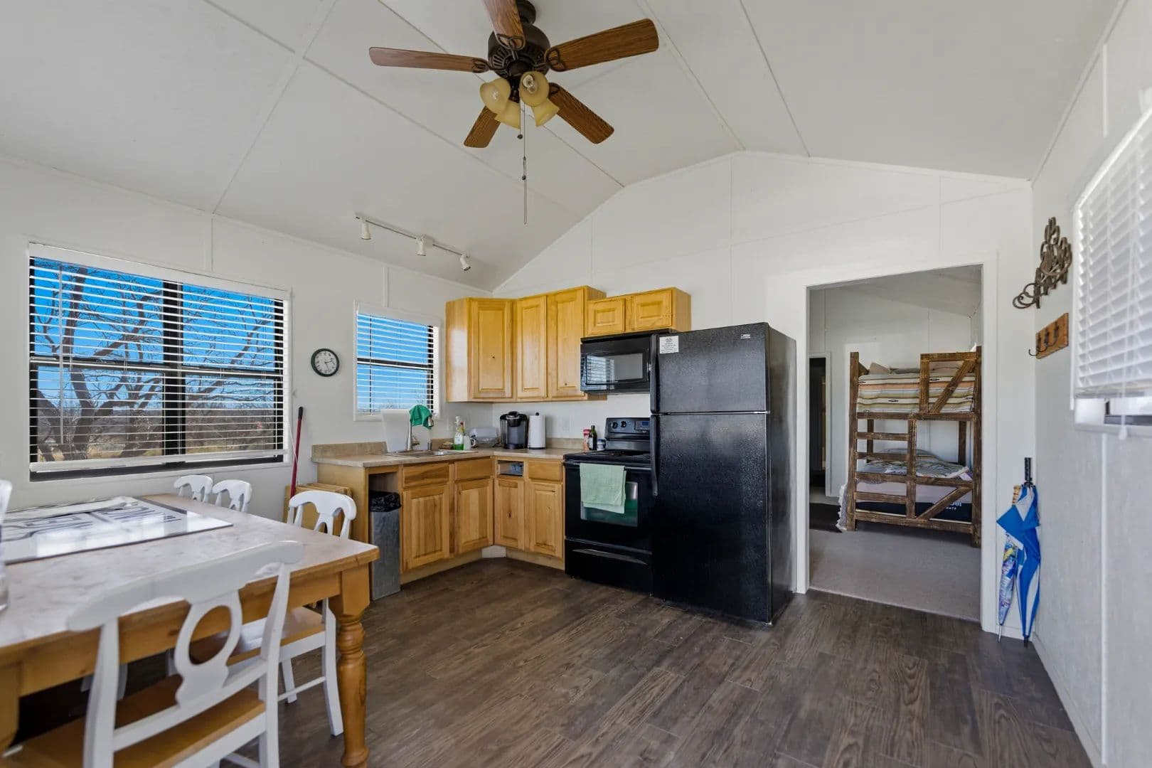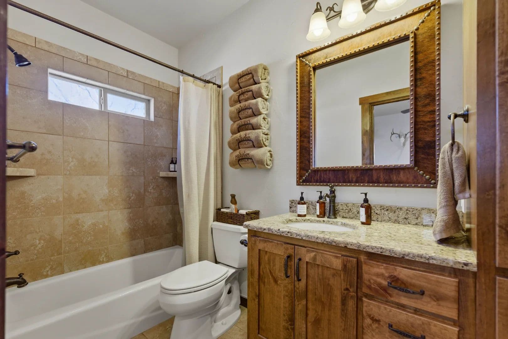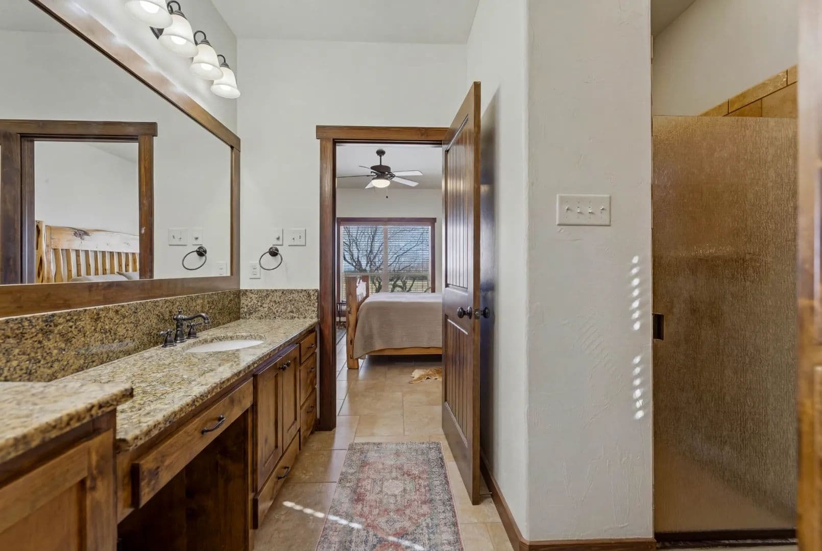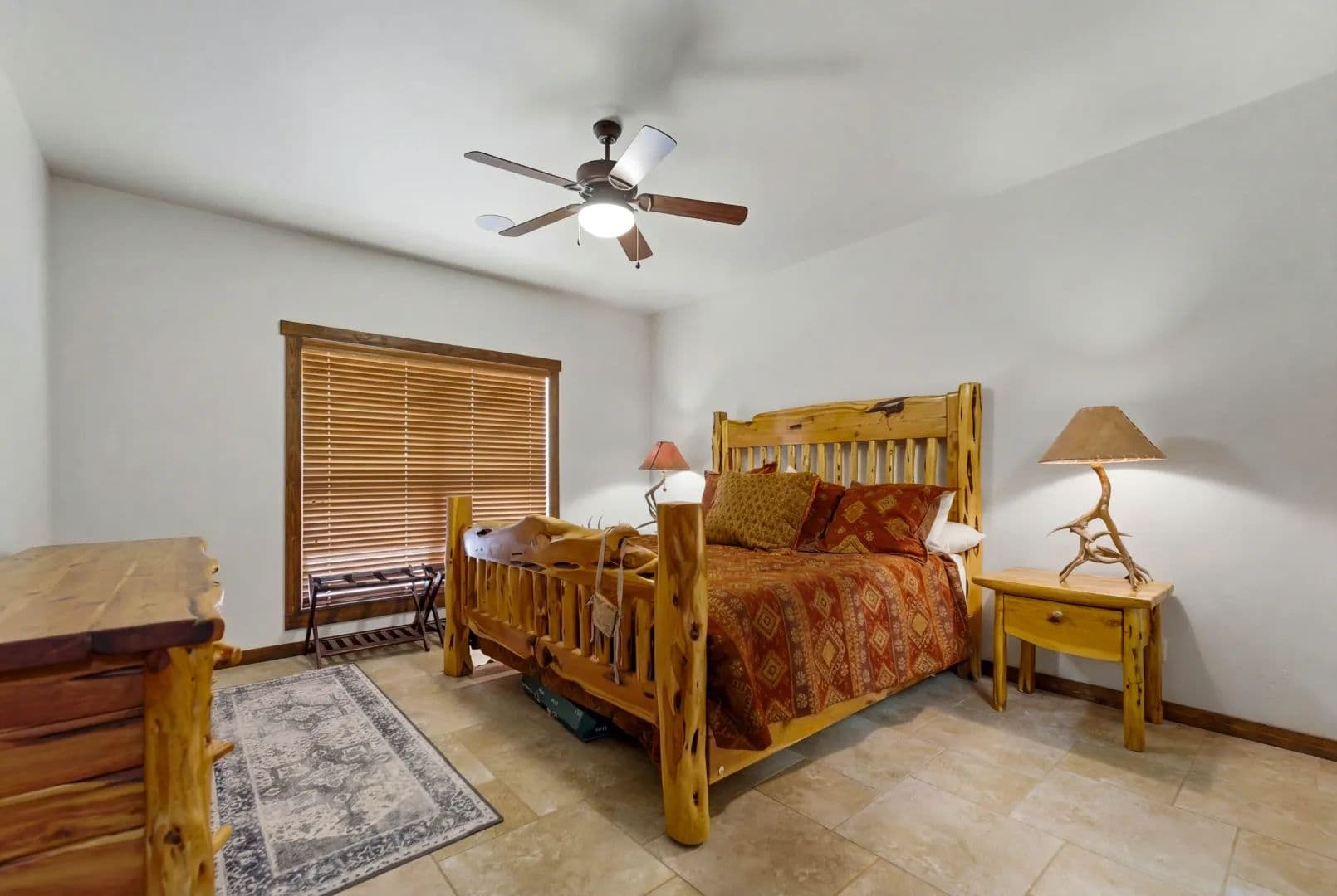 - At the heart of the property sits a beautifully appointed 4-bedroom, 4-bath ranch-style lodge totaling 2,400± square feet.