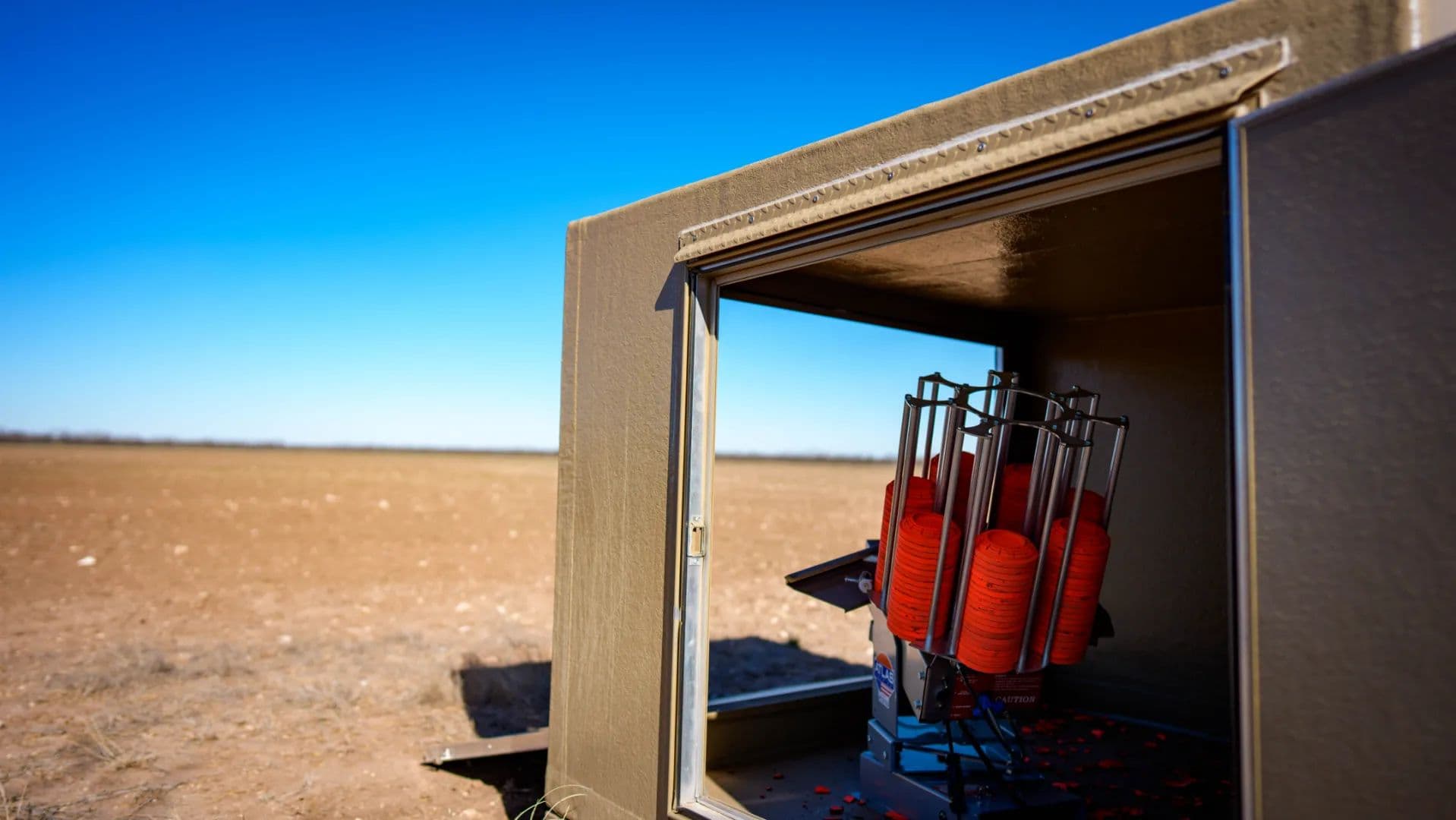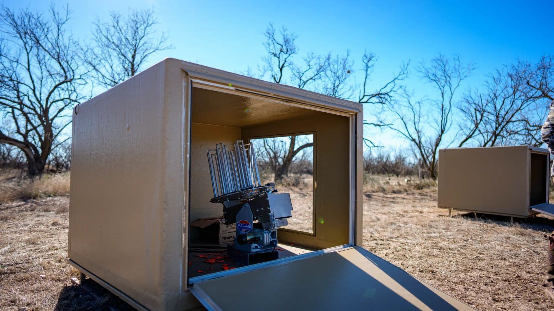 Two Atlas Model 250 oscillating skeet throwers