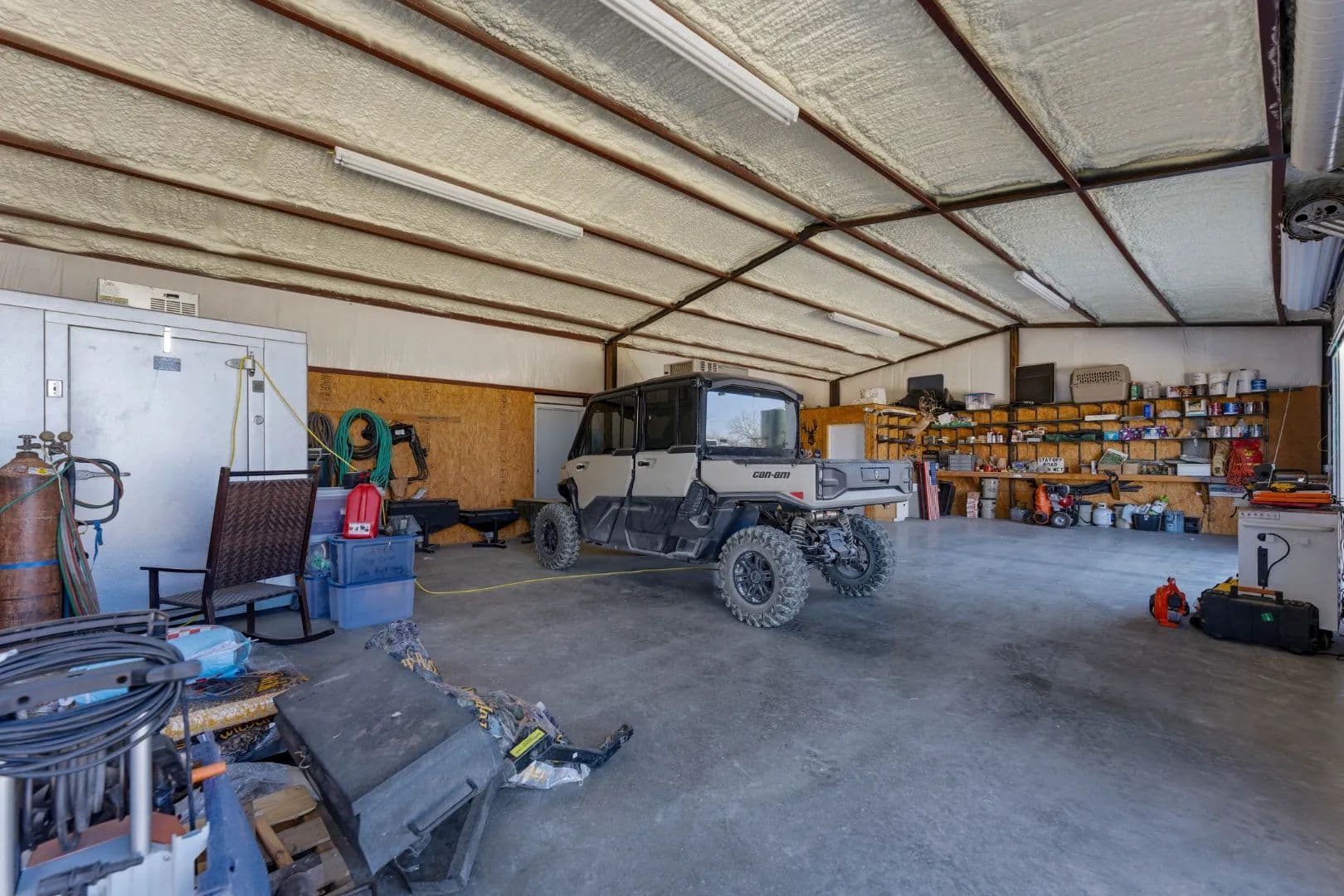 - Large insulated metal shop featuring deer cleaning room, walk-in coolers, spray-foam insulation, LED lighting, and four new overhead doors—ideal for equipment, ranch vehicles, and operational storage