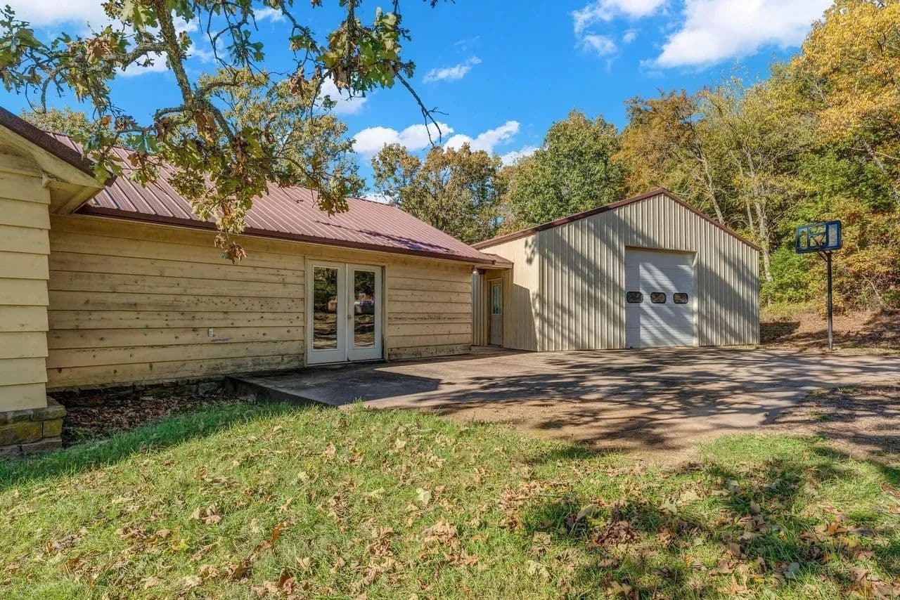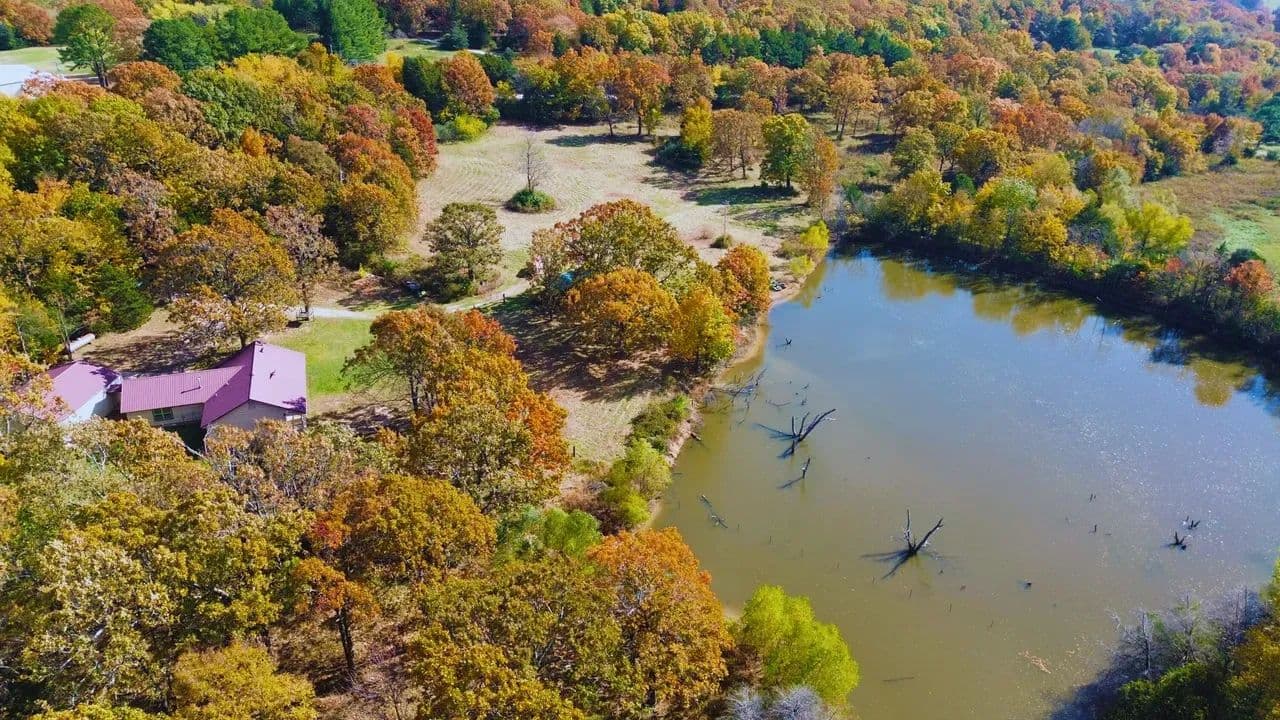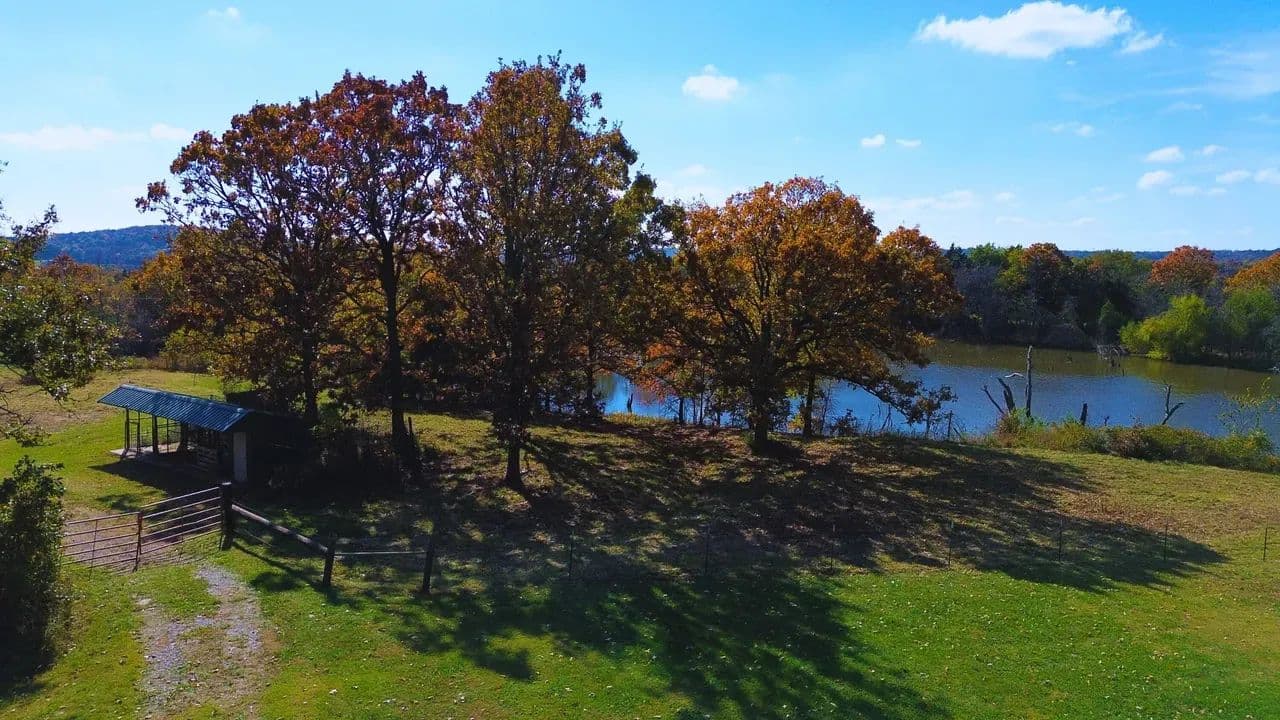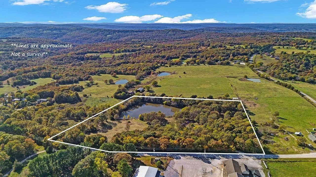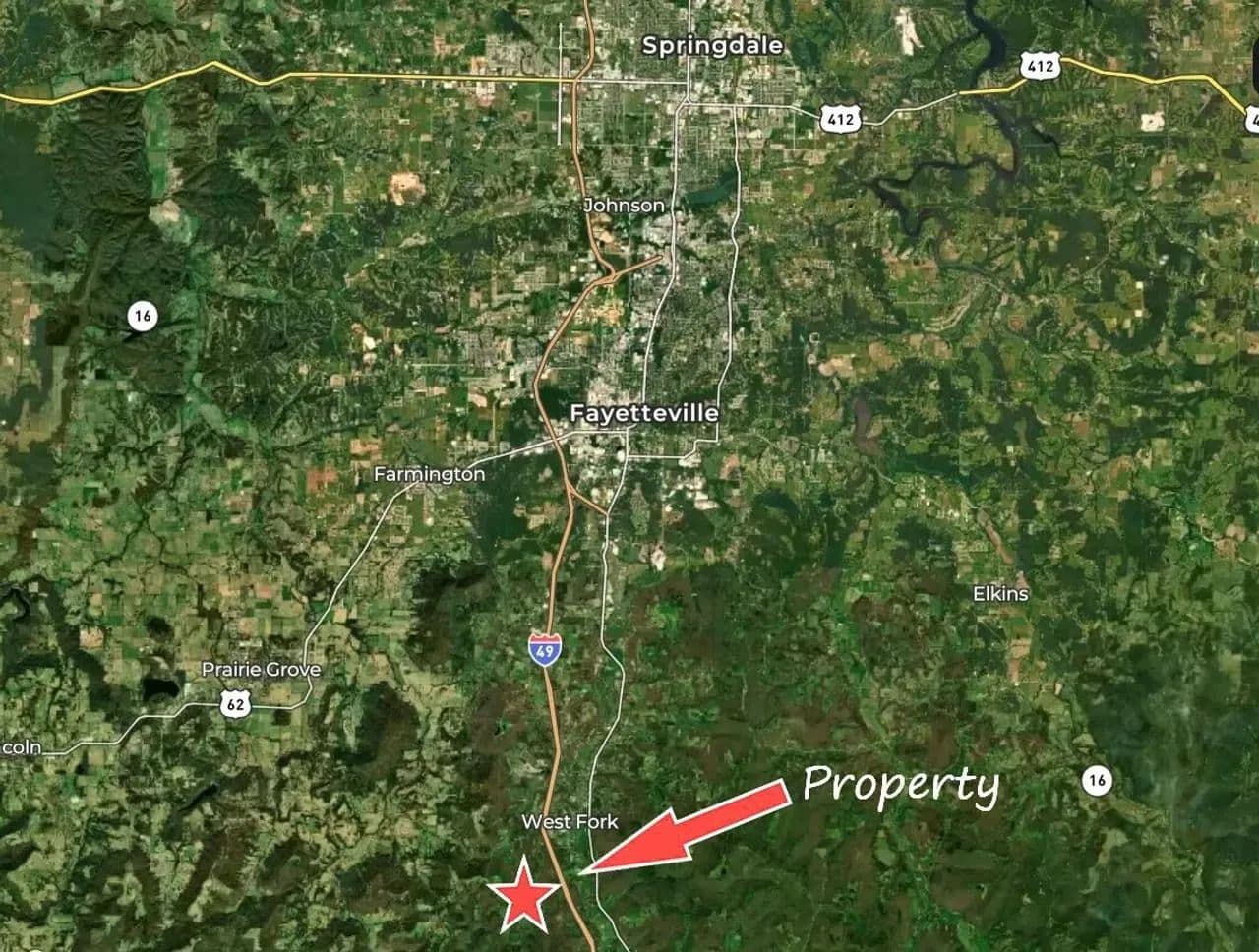 Secluded 13 acres less than 2 miles from I-49 and within 15 minutes of Fayetteville. Right on a paved road but totally secluded due to the beautiful mature trees surrounding this property. Pull down the wooded driveway to a house with a huge front porch and a 1200 square ft shop. Large bonus room with outdoor access has many possibilities. Just outside the front door is huge pond covering over 2 acres thats loaded with fish. Have your own private mini farm or turn this into an income producer. This flat property sets up as a perfect place to add multiple small rental units with an outdoor focus. Fishing, camp fires, cookouts, nature trails. Super convenient location. It's getting really hard to find property with this kind of character so close to town. A lot could be done with this place.