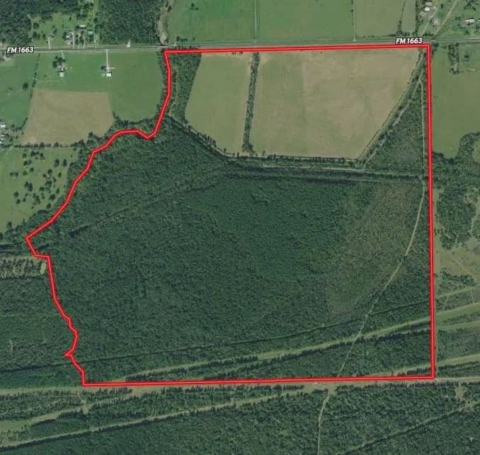The property features 3400 feet of FM 1663 frontage, 85 acres of pasture, and plenty of hardwoods and pine trees. It is also home to a variety of wildlife, including deer, hogs, and ducks.