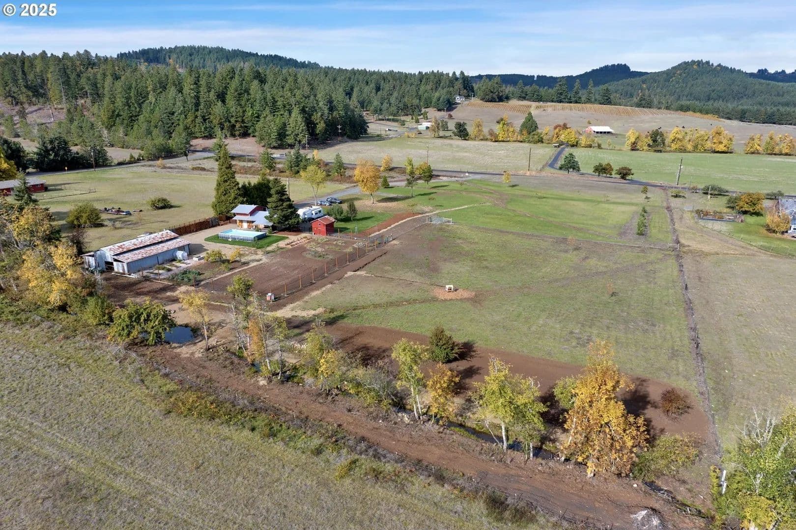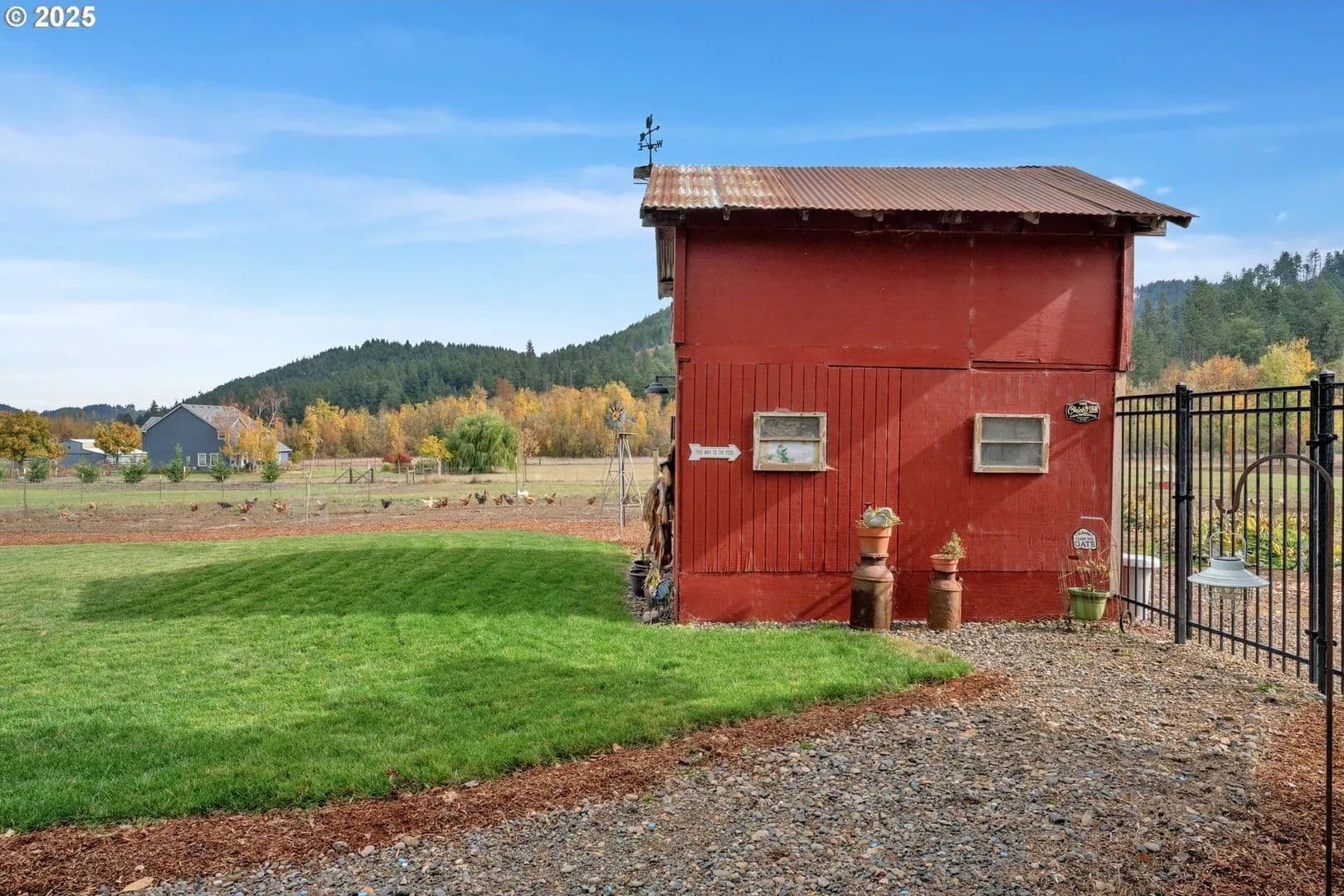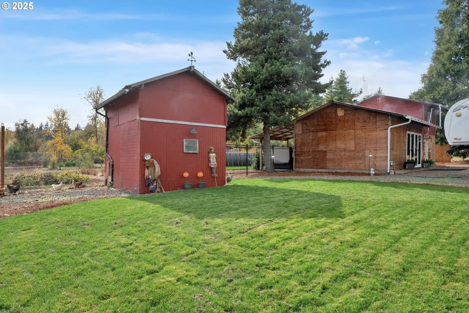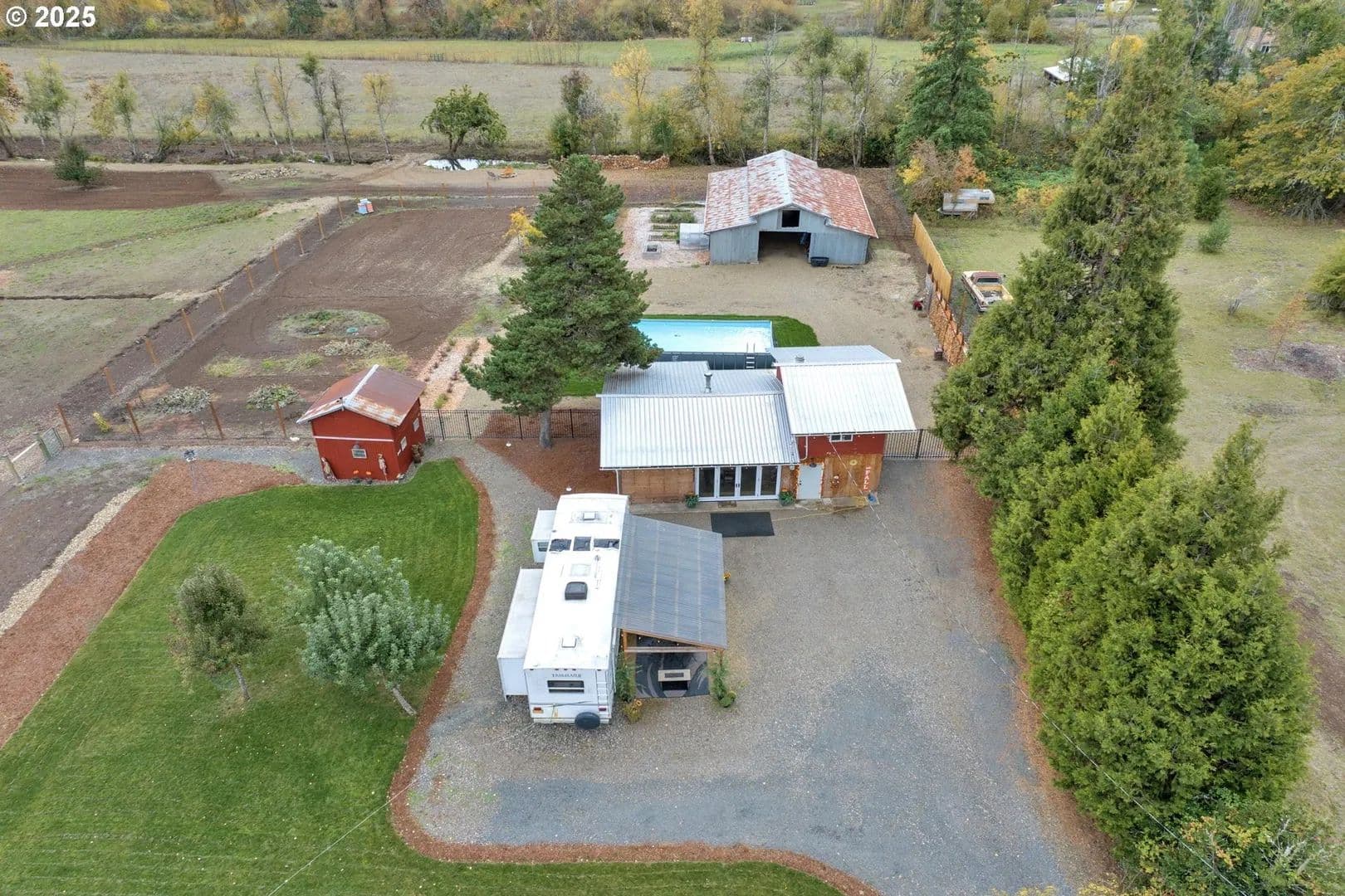 The ultimate acreage property, ready for your new home! Discover incredible potential on this 5.17-acre property perfectly situated to capture views of tree-covered hills, a nearby vineyard, and your open, well kept land. This isn't just land; it's a fully equipped opportunity! Features include a year-round creek, ample pasture areas, wrought iron fencing and 8' elk fencing enclose the huge garden area, and 16x34' pool set perfectly on the manicured lawn. The existing structures offer immense utility: a 36x50 barn with storage room contained within the gated and fully fenced area, a 20x36 workshop (featuring a bathroom, laundry hookups, and a 20x12 second level) with open concrete floored lean-to off the back for more covered convenience (currently used for spa, and a large poultry coop. Live in your RV while you build! There's a dedicated RV site with hookups, and attractive cover for your outdoor kitchen/patio area! All utilities in place! This prime, ready-to-go land awaits your dream home, whether you build new or place a manufactured home.