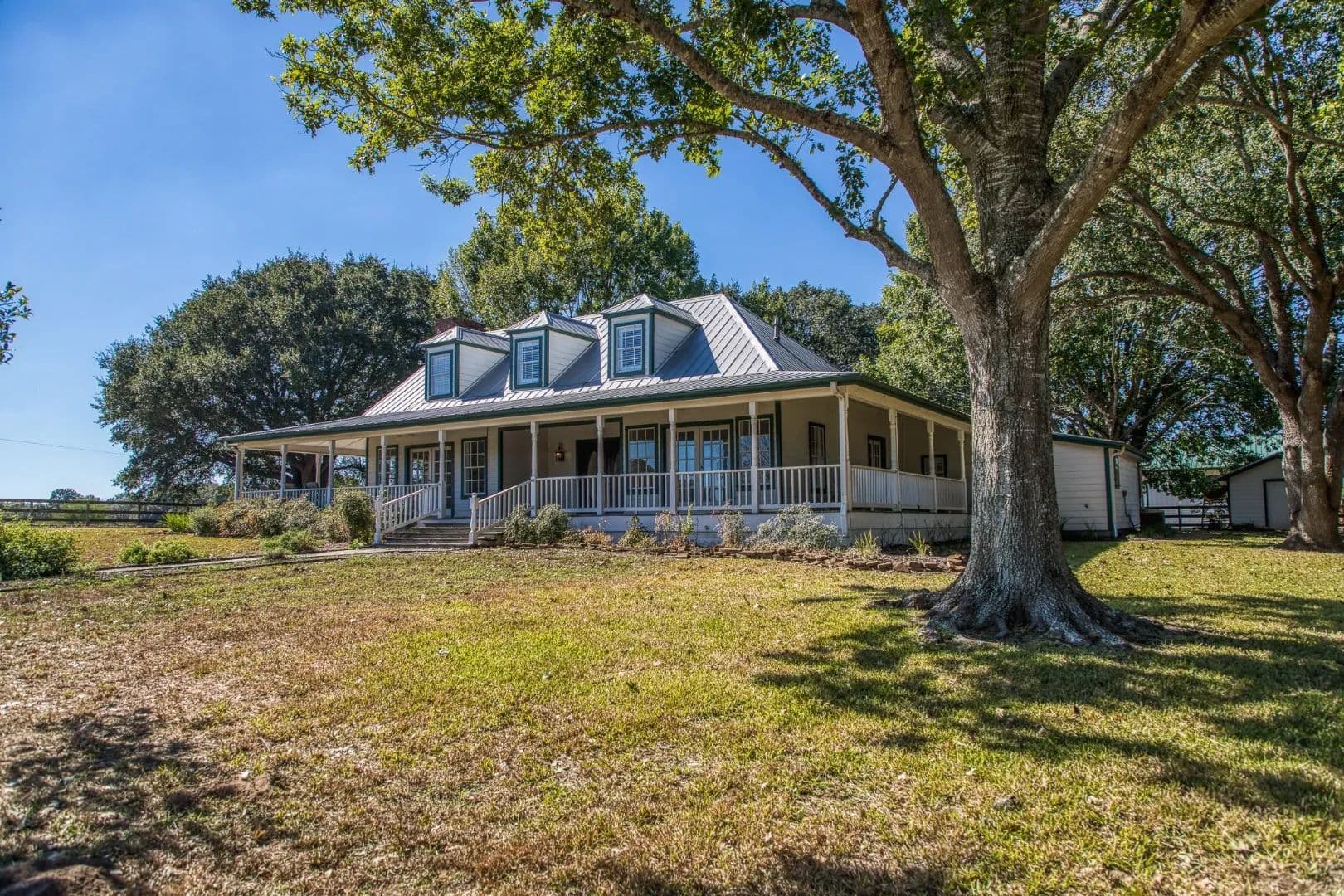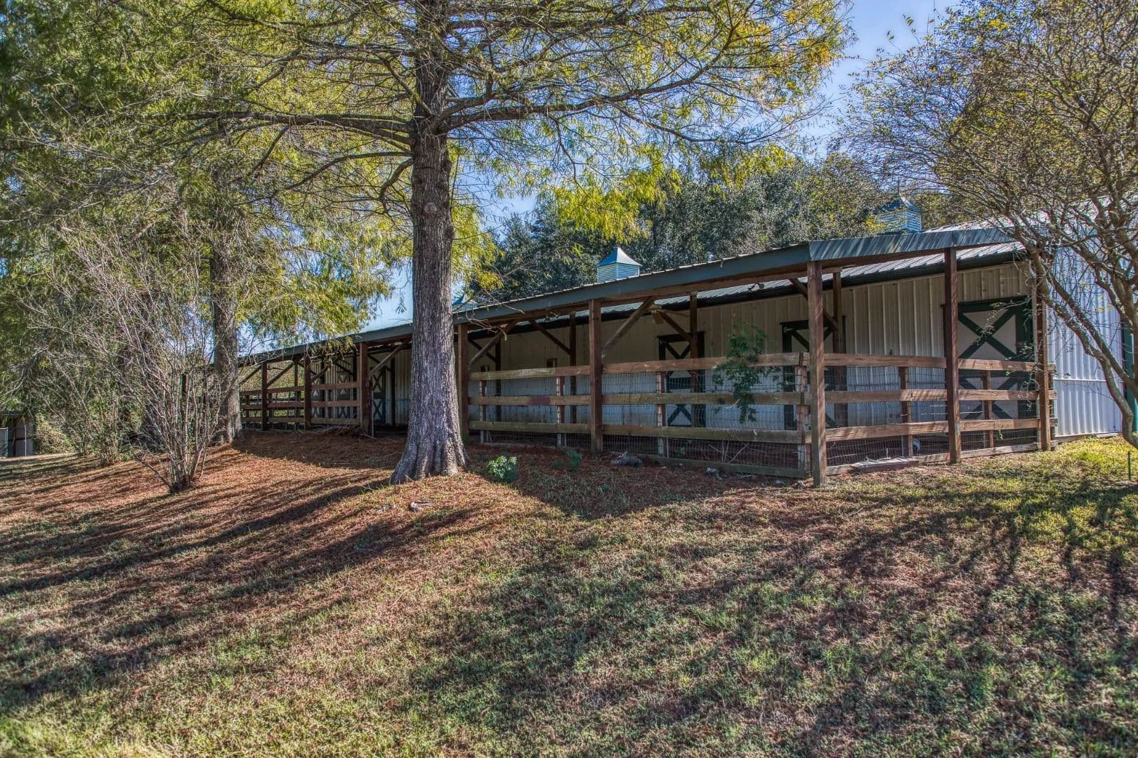 This 62-acre estate between Bellville and Brenham offers rolling pastures, long views, and exceptional privacy. Fenced and cross-fenced, the property features wooded boundaries, a creek, and abundant wildlife. A late-1800s home sits beneath towering oaks, sycamores, and crepe myrtles, with a wraparound porch perfect for rocking chairs and conversation. The 3-bed, 3-bath home features a soaring living room ceiling, French doors, and a central fireplace. A separate 2-bed, 2-bath guest house provides comfort and privacy. Equestrian amenities include a 10-stall center-aisle barn with cushioned pavers, wash rack, fly system, foaling stall, plus an apartment and office. Pastures offer excellent turnout and riding areas. Additional improvements include a 5-bay equipment barn with shop, round pen, and dog kennels. Ideal as a retreat, family estate, or working ranch, this property offers space, beauty, and limitless potential.