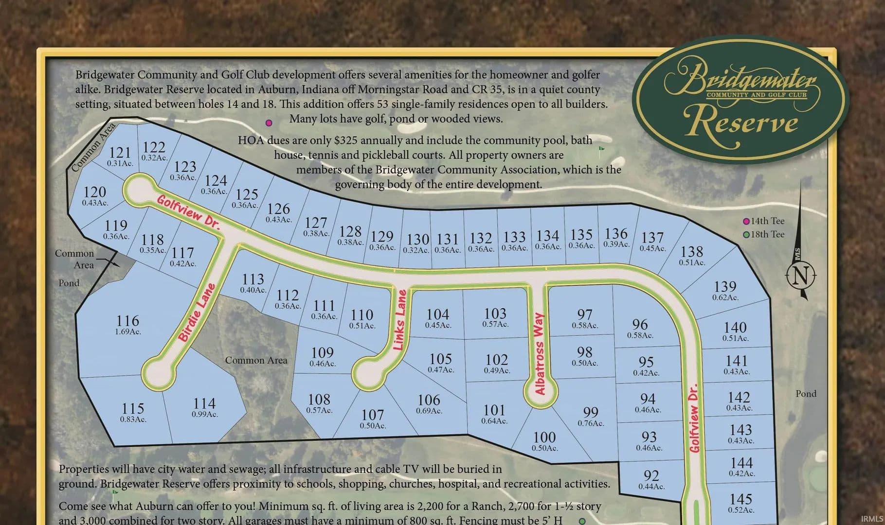New Lot located within Bridgewater Reserve. Views of fairway 15! One story home minimum sq ft 2,200. Two Story min. 3,000 combined plus a 800 sq ft garage. Low HOA dues with access to community pool, tennis/pickleball courts.