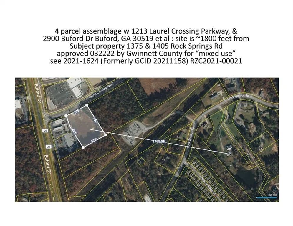 **See recently approved Mixed Use development 1213 Laurel Crossing & 2900 Buford Dr, Buford Gwinnett Commission Case #: 2021-1624 (Formerly GCID 20211158) RZC2021-00021 (subject to change w/out notice