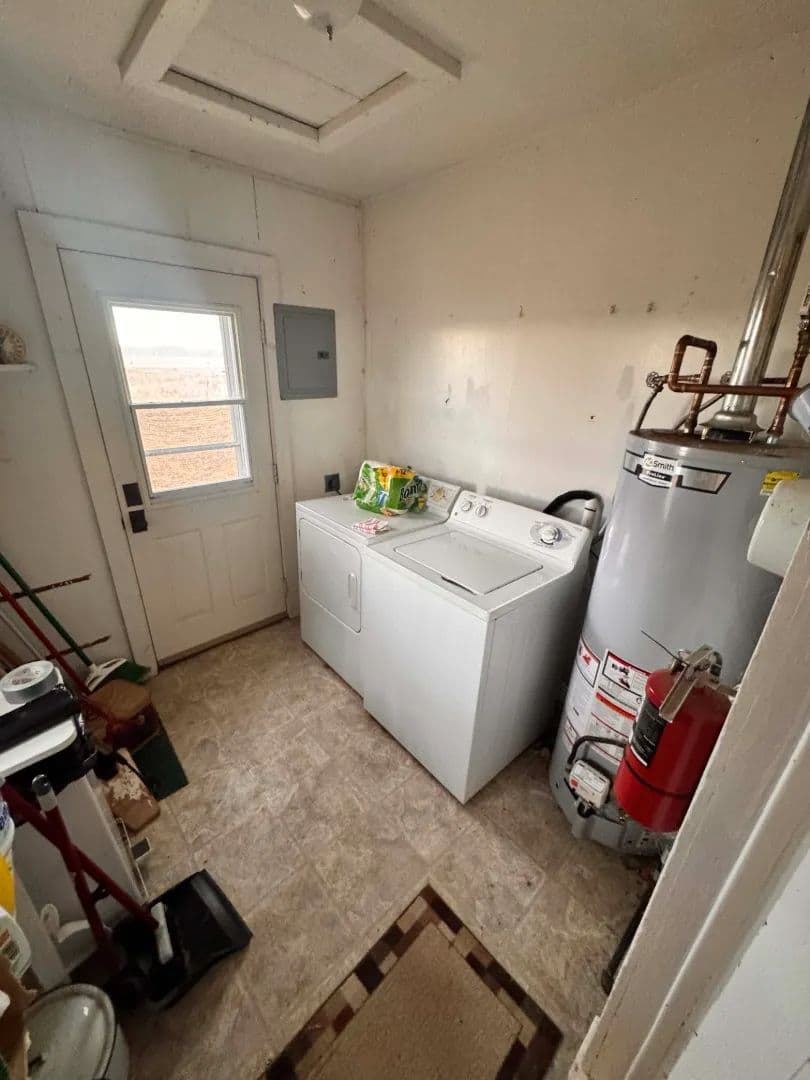 The Headquarters is a remodeled 3/2 with a great view of mountains to the west that becomes absolutely spectacular at sunset. A 40' x 80' metal shop with a concrete floor and large doors offers ample space, large enough to accommodate an airplane, and includes a bathroom and shower for hunters or guests. Two additional small outbuildings provide convenient storage.