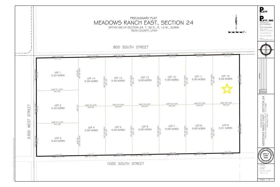 Meadows Ranch East Lot 10 Ph 2 - 5 acre parcels adjacent to SUU Farm. Electricity & water all available in area. Lots 1,2, & 3 reserved.