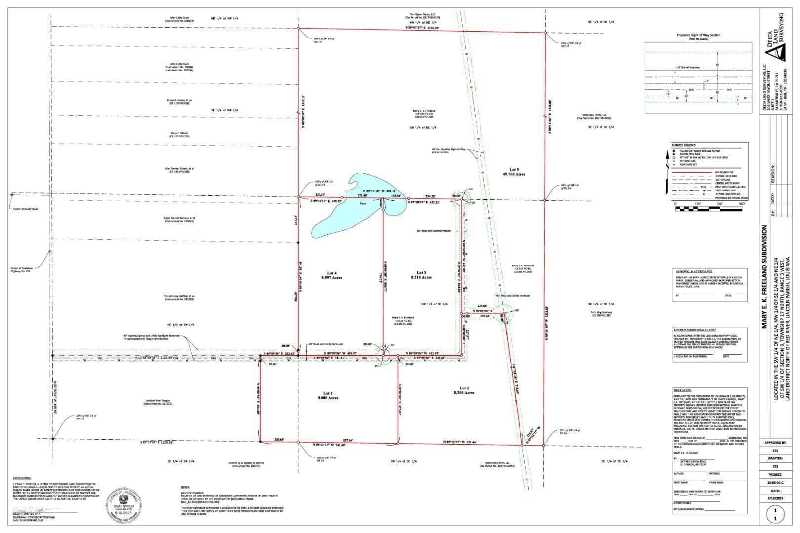 Lot 4 of the King Estates subdivision offers 9 acres of open space, just 7 minutes from Downtown Ruston, LA. This property features gently rolling hills, mature pine trees, and a recently renovated pond. King Estates is a new large-lot development designed for those who want more space while remaining close to town. Minor Building restrictions are in place to maintain a consistent look and quality throughout the neighborhood. An HOA will be formed to handle private road maintenance. This neighborhood is still under development. Water and electricity will be provided to the lot on or before the end of 2025, and the asphalt construction of King Estate Lane will be completed before September 2026. Don’t miss your opportunity to build in a developing area with room to grow.