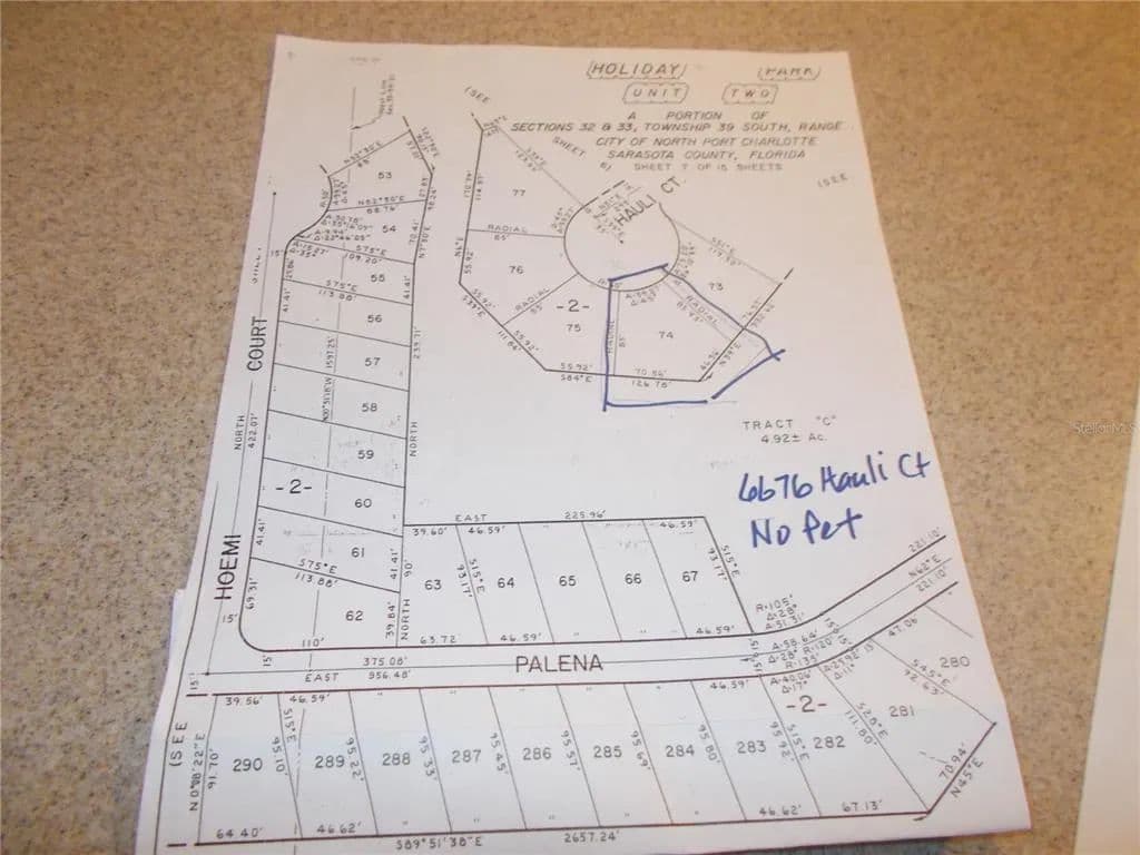 VACANT LAND in the sought after Gated Community of Holiday Park and NOT IN THE PET SECTION. The land is located on Hauli Court, in the cul-de-sac and is 6921 square feet. It sits between 2 new homes. In Holiday Park you own the land with a deed and the maintenance fee $2340.00 a year ($195.00 a month) is included in your taxes. Holiday Park offer many amenities including 2 Pools, Tennis Courts, Pickle Ball, Bocci, Shuffleboard, Laundry Library, Horseshoes, Bingo plus other card games, Fitness Room and so much more. This home has been pulled off and electric and water are in place. This is a perfect place for your new manufactured home. Come and see!