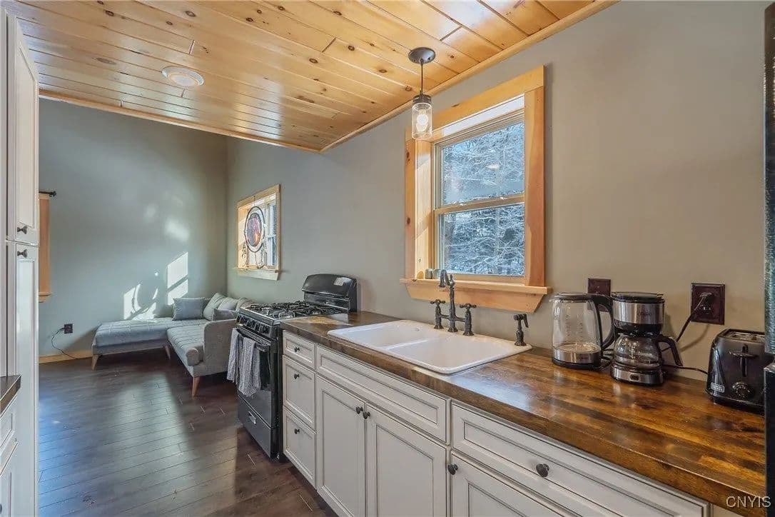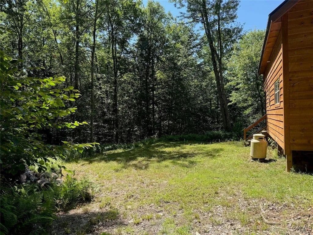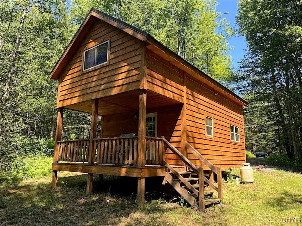 This stunning, newly built cabin sits on 5.36 acres of privacy. Designed for year-round living, the cabin welcomes you with its warm natural wood finishes and cozy atmosphere. Inside, the cathedral ceilings are accented by a tongue and groove finish and exposed beams. The kitchen features beautiful butcher block countertops and modern appliances, blending rustic charm with convenience. The cabin offers a spacious bedroom and a versatile loft area, ideal for additional sleeping quarters or a home office. The home has electricity, a well and septic system, making it fully functional for year-round living. Step outside to the covered back porch, where you can sip your morning coffee or fire up the grill while taking in the peaceful, wooded surroundings. Enjoy nearby access to snowmobile and ATV trails, as well as prime fishing and hunting opportunities. The property is just a short drive to Oneida Lake, local marinas, beaches, and state parks.