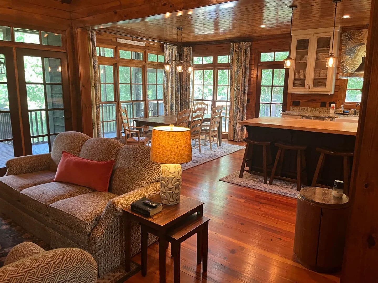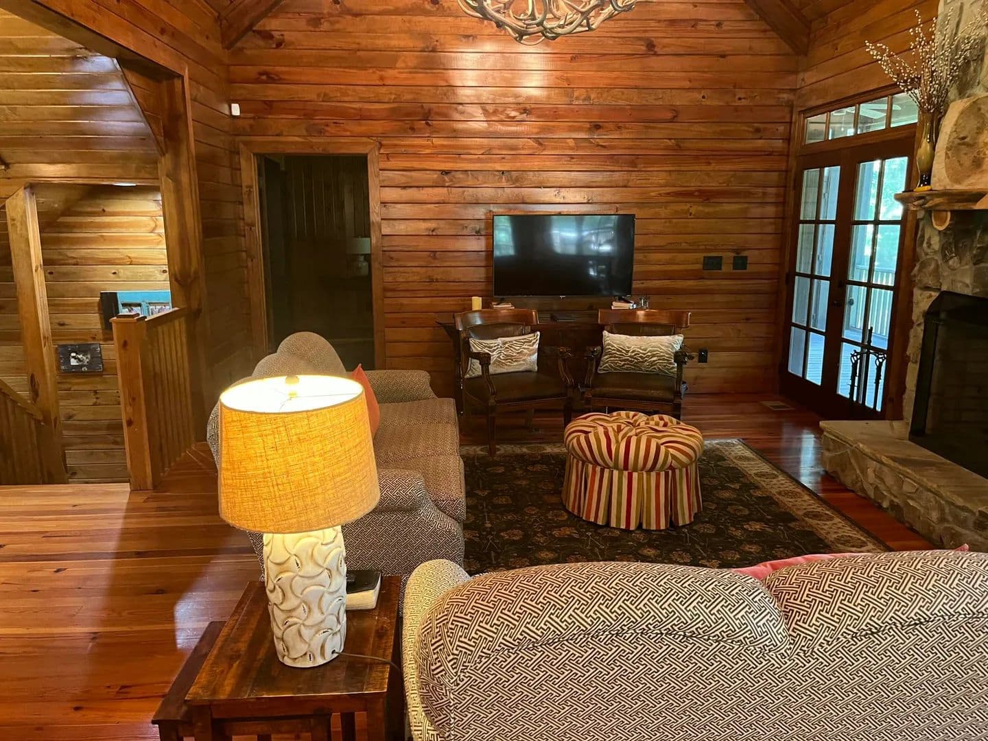 Built in 2011, this three-story retreat blends rustic charm with modern comfort, featuring hearty pine walls and well-maintained hardwood floors throughout.