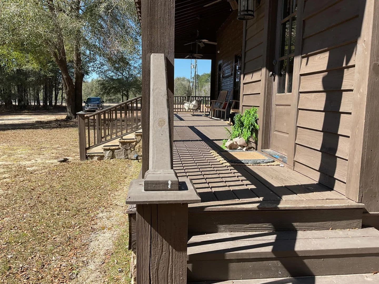 A welcoming front porch, ready for your rocking chairs, where you can soak in the peaceful beauty of the South Carolina skies.