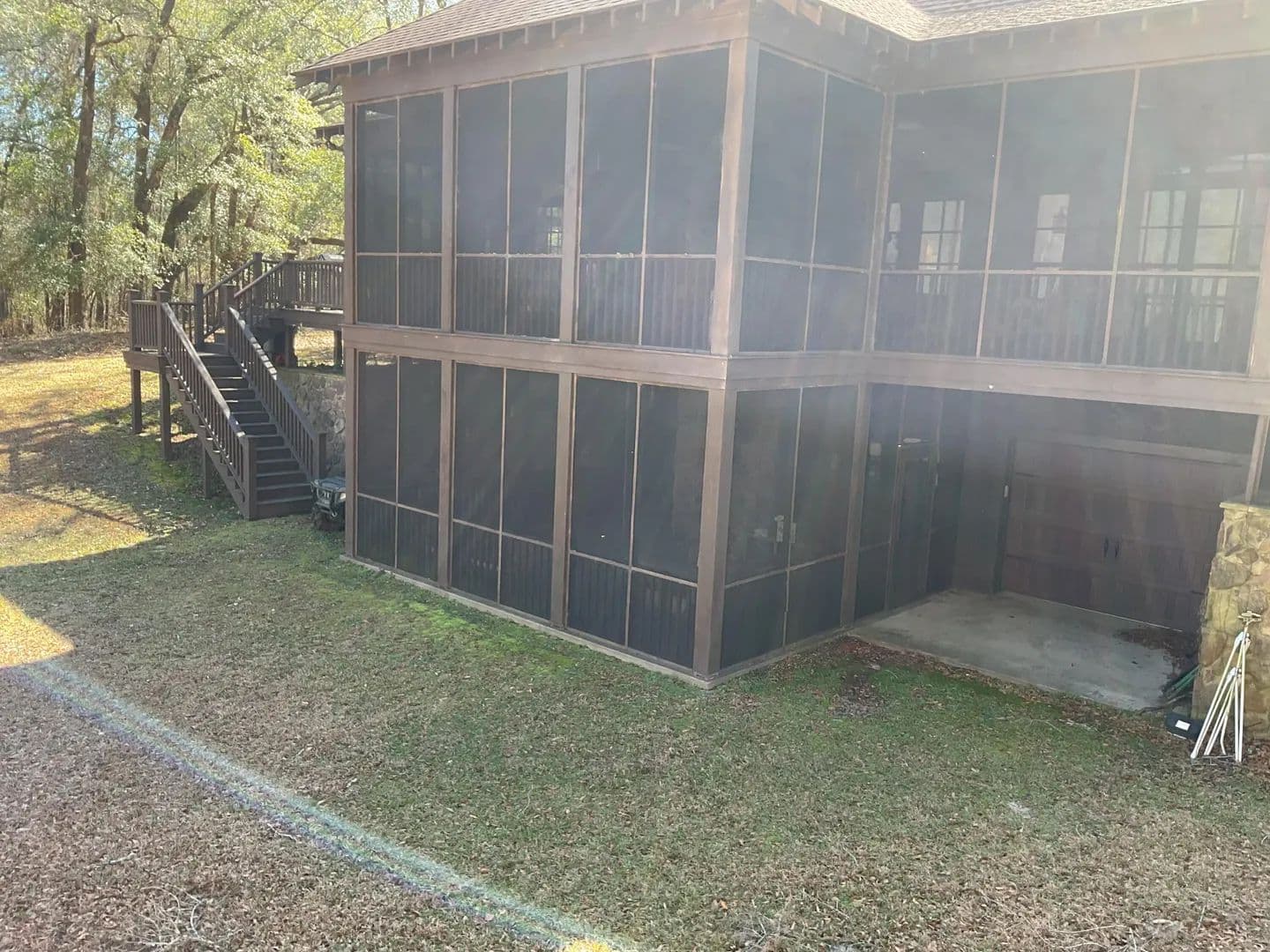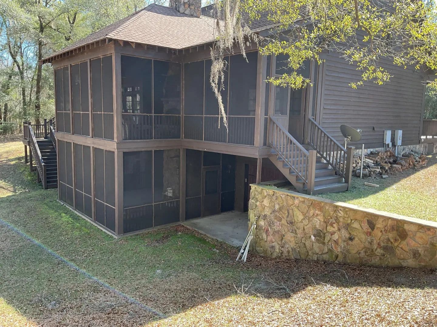 Lower Level: A second living area, an additional bedroom, and a full bath, along with another screened-in entertainment area, provide ample space for guests.