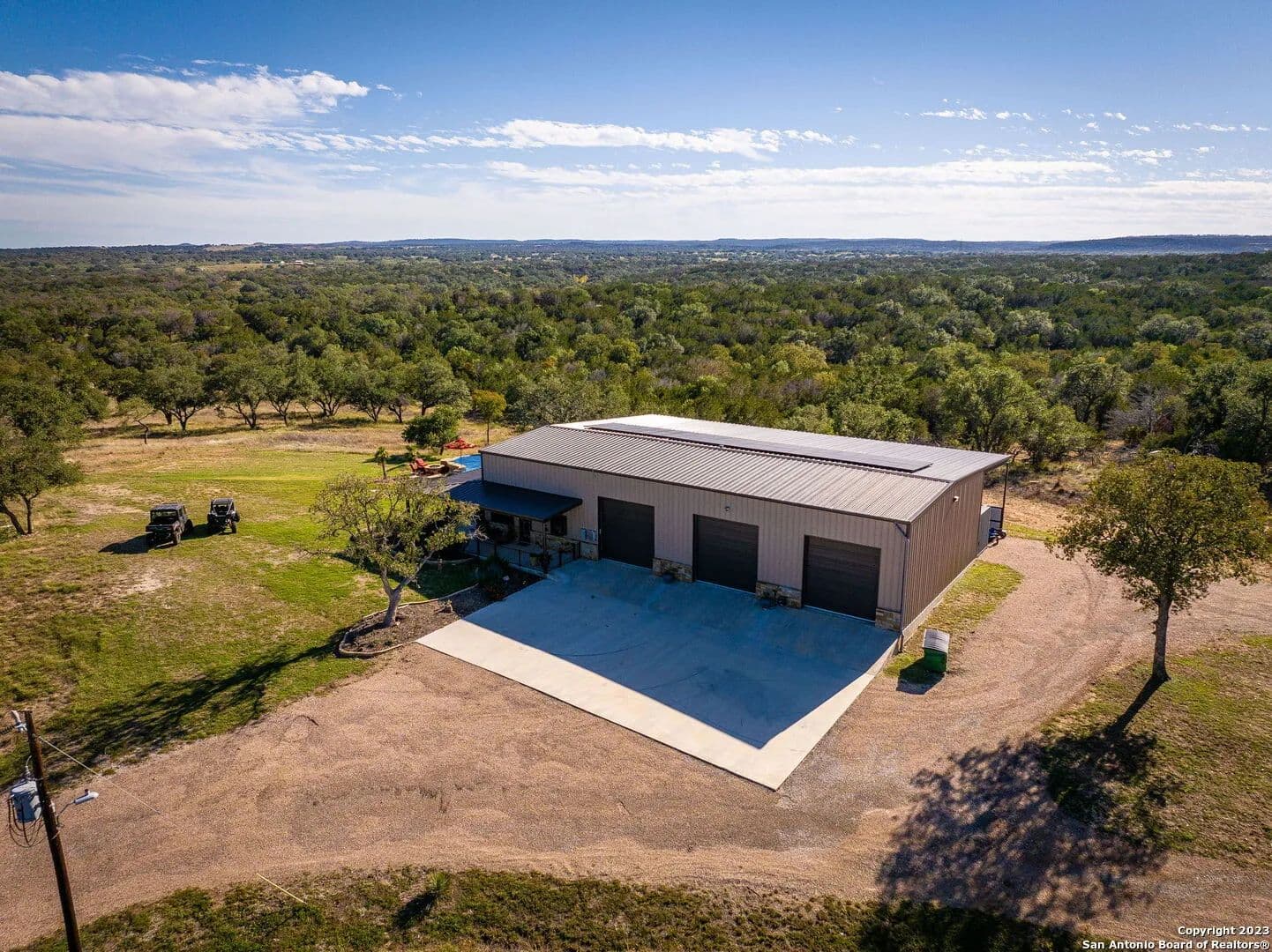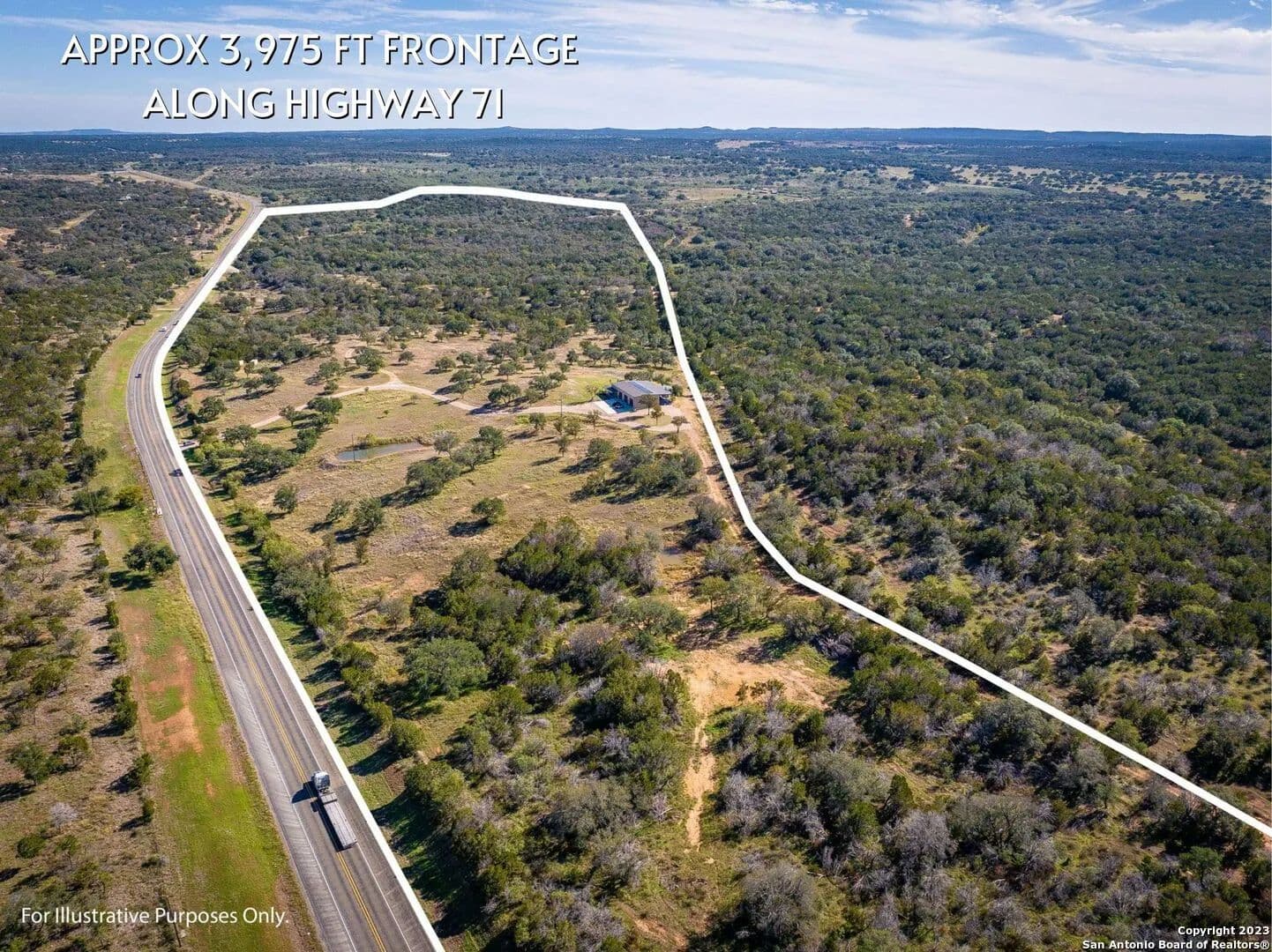 Welcome to your own Texas haven - a remarkable opportunity to embrace the true spirit of the Lone Star State across 94.25 acres of enchanting land. Less than 10 minutes to Horseshoe Bay, 15 minutes to Marble Falls, and just over an hour to both San Antonio and Austin, boasting approximately 3,975 feet of Frontage on Highway 71 and "Live" water, this unrestricted property is a true testament of value. Electronically gated and fenced, the property features expansive pockets of scenic woodlands, live water, a pond, and, as the centerpiece, a charming barndominium with an Oversized Garage and Workshop (58'x39'), adding both character and practicality to your rural retreat. With an open floor plan and split bedrooms, privacy, convenience, and authentic Texas Hill Country living is at the core of this peaceful retreat. Step outside, and you'll discover a resort-like oasis with a sparkling pool and hot tub, perfect for relaxation against the backdrop of the Texas countryside. A well and cistern, paired with a 50-gallon rainwater catchment tank and a 14 kW LG solar system with Enphase, provide a robust and sustainable water and energy solution offering reliable conservation and ultimate self-sufficiency. With its prime location along Highway 71 and commercial zoning, this property not only offers privacy, tranquility, and convenience but also the potential for a thriving business venture. Whether you're envisioning a thriving farm, a tranquil escape, a bustling business, or a mix of it all, these parcels with just under 95 acres of land are ready to support your genuine vision. More than a lifestyle; it's a chance to embrace the genuine, unfiltered beauty of Texas.