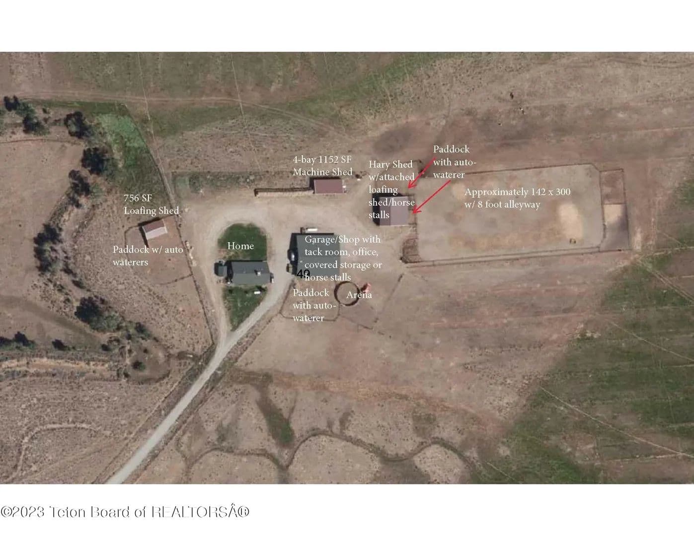 Introducing the Rafter Double R Ranch at Boulder, a picturesque 302-acre property located on the western slope of the Wind River Mountain Range. Situated 15 minutes from Pinedale and an hour and forty minutes from Jackson Hole, this ranch offers a blend of natural beauty, agriculture, and abundant recreational opportunities. Originally established as a horse ranch, the Rafter Double R Ranch at Boulder now serves as an auxiliary property to a larger cattle operation. The owners have practiced regenerative agriculture, as taught by Gabe Brown, and have been dedicated to improving the soil health and forage growth of the property. Conveniently accessible via a paved County Road, the ranch provides year-round access and offers panoramic views of the Wind River Range. It is surrounded by Wyoming's best outdoor recreation areas, including world-class fishing, hunting, hiking, and winter sports. The property boasts several improvements, including a 2272 SF ranch home built in 2005. Additional structures include a large shop/garage with 2476 SF enclosed space and another 1880 SF under roof. There is an 1152 SF 4-bay machine shed. In addition, there is a combination hay shed (1440 SF) and loafing shed (768 SF), and a 756 SF loafing shed: both have attached paddocks with waterers. Additional equestrian facilities include a roping arena approximately 142 x 300 feet with an 8-foot return alley, a 34-foot diameter round pen and tack room. The ranch is equipped with two Reinke pivots, one with five towers and another with seven towers. It also has irrigation rights from the Boulder Canal and several auto-waterers for paddocks and winter stock water. The property offers multiple additional home sites, providing the opportunity to build a larger ranch home while keeping the existing residence for a ranch manager. The office space in the shop could be converted into a guest suite if desired. All the structures and amenities on the ranch have been well-maintained. The Rafter Double R Ranch at Boulder presents an opportunity to own an authentic western ranch with stunning surroundings and a range of amenities. Experience the tranquility and possibilities it offers as you make this ranch your own.