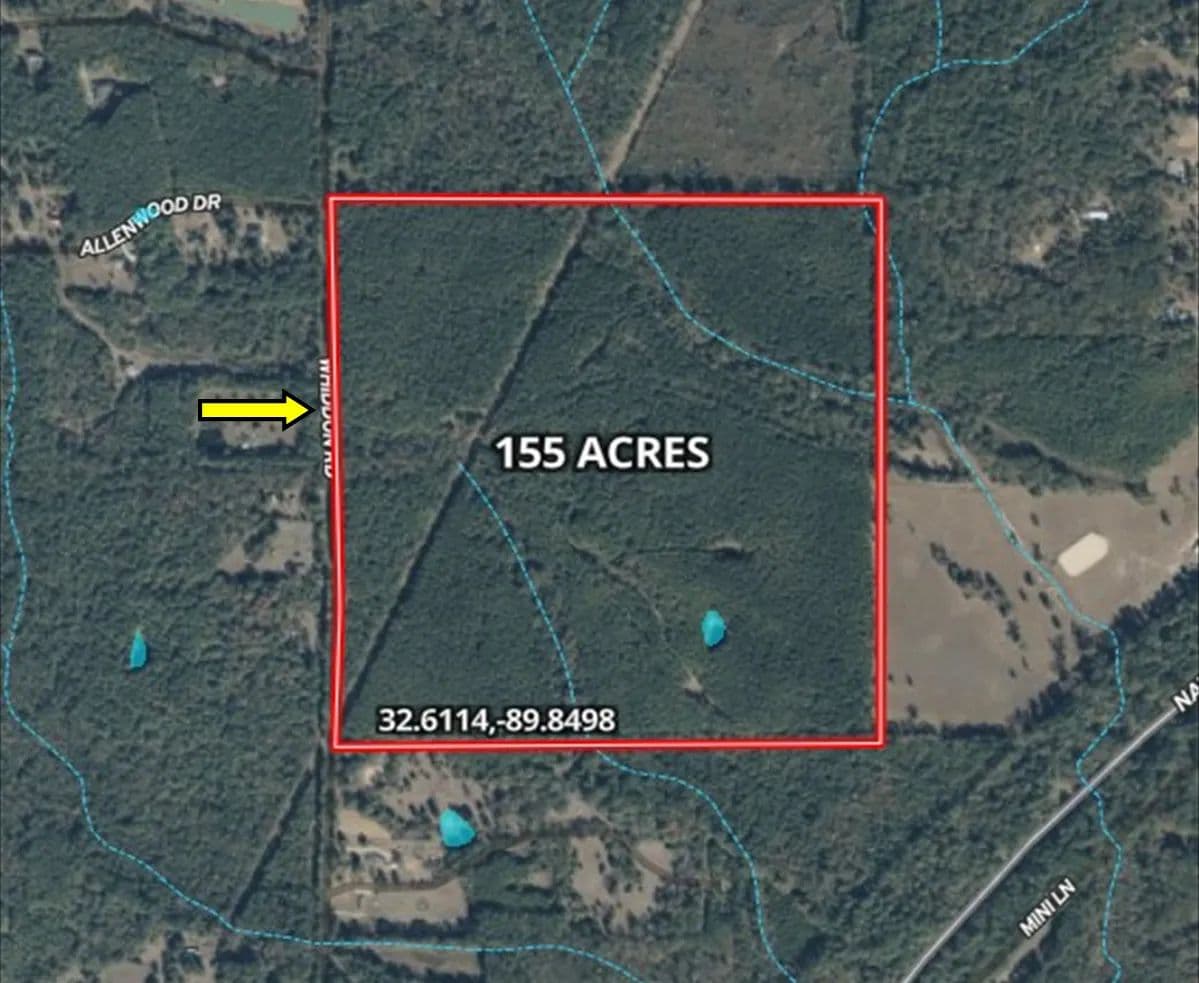 This 155± acre tract in Madison County offers a strong combination of timber value, recreational opportunity, and long-term development potential. The property features approximately 2,650± feet of frontage on Whiddon Rd along with an established internal road system for easy access throughout the tract. Mature pine timber and two hardwood creek bottoms create both investment appeal and excellent wildlife habitat. The land includes established food plots and supports quality deer and turkey hunting. Located near the Natchez Trace and the Ross Barnett Reservoir, the area provides convenient access to recreation and amenities. With its size, road frontage, and layout, the property also presents a compelling residential development opportunity in a rapidly growing market. This is a rare chance to secure a versatile multi-use tract in Madison County, MS.