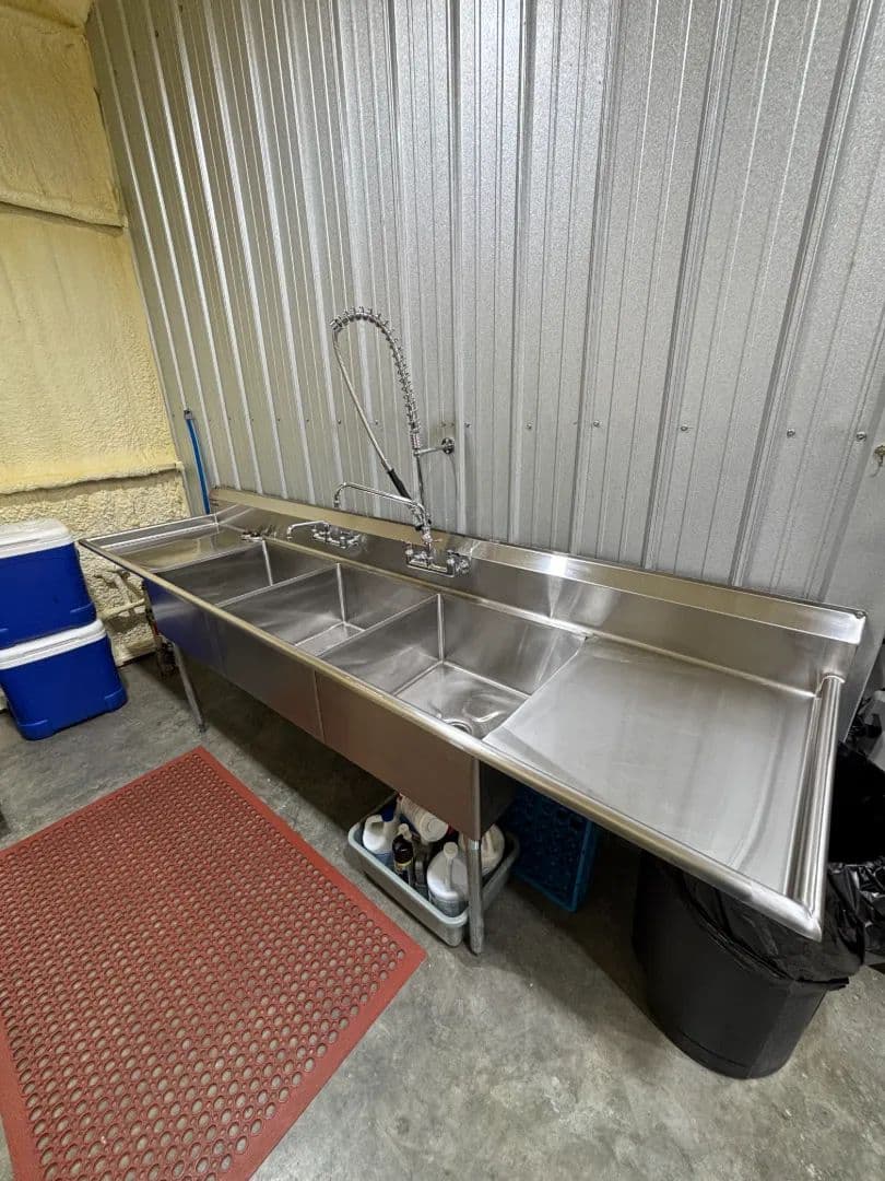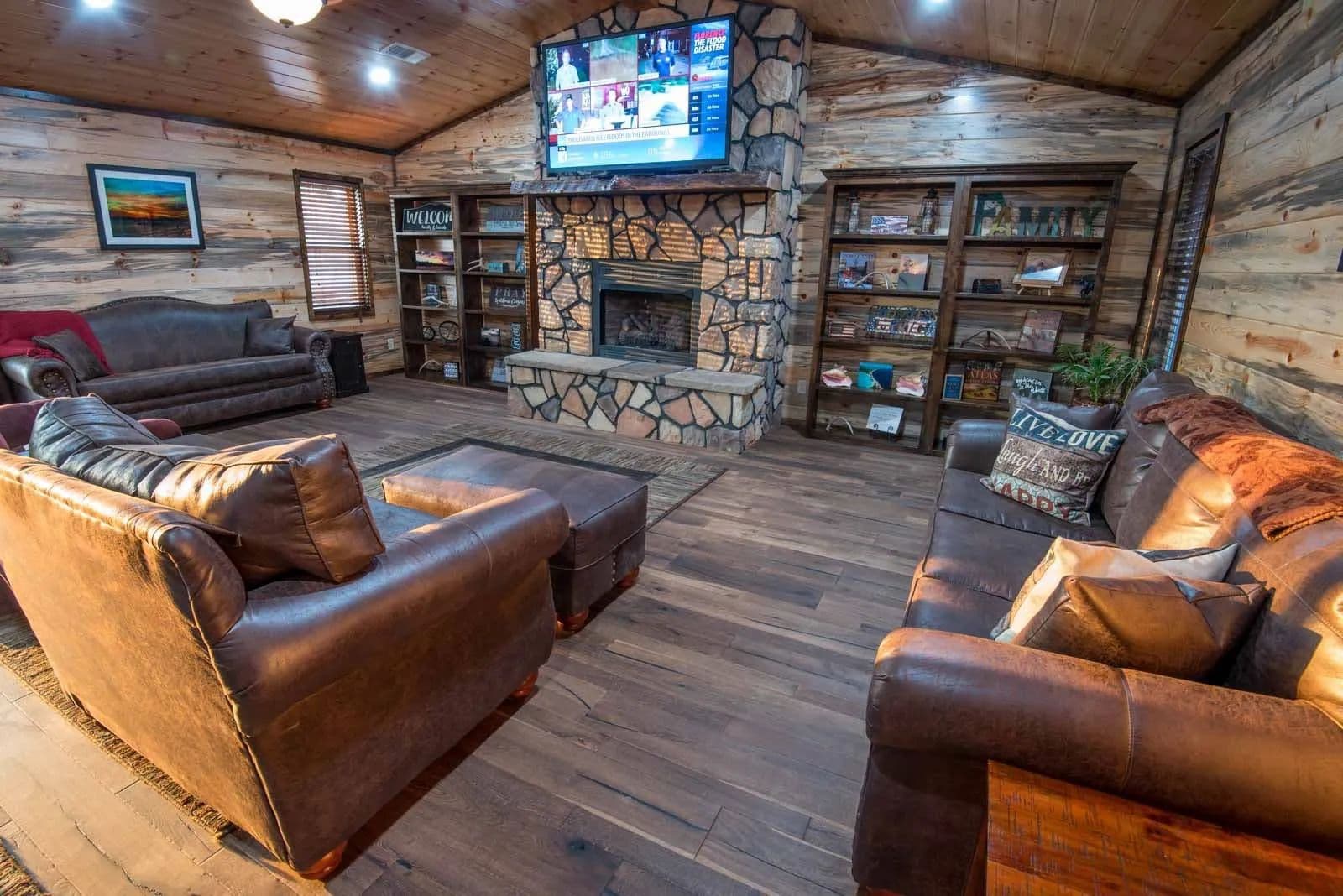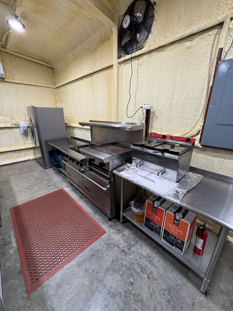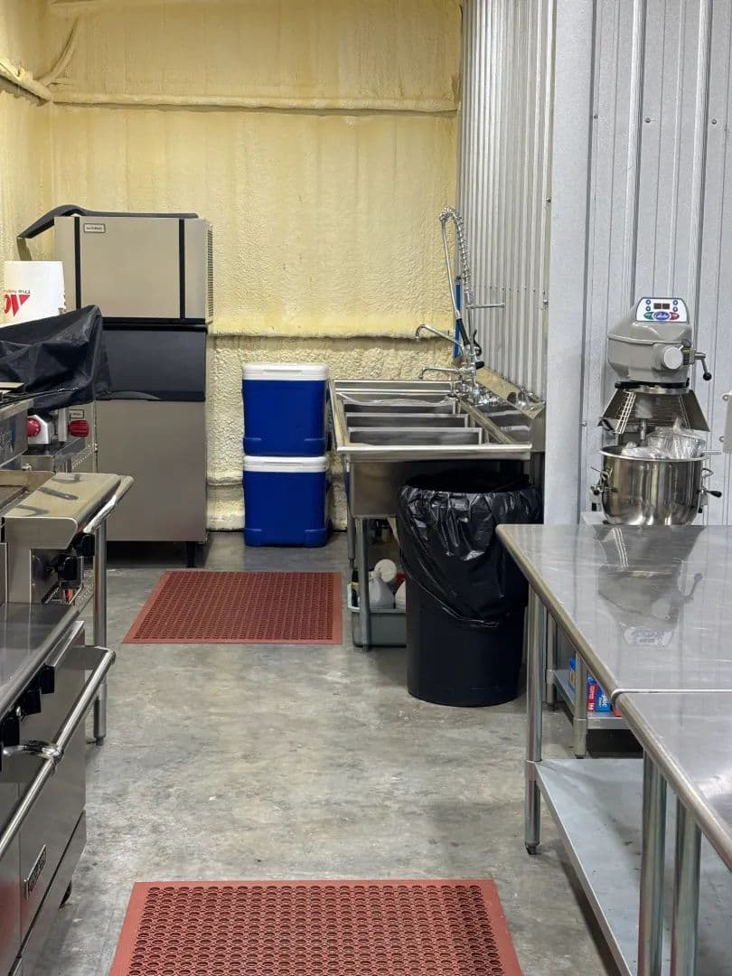 At the heart of the 45± acre property sits a fully renovated 2,750± square foot main home, warm and inviting with its blue and white pine walls, granite countertops, and spacious dual living areas. Just steps away, a climate-controlled commercial kitchen stands ready for family meals or large gatherings, complete with stainless surfaces, top-tier appliances, and a walk-in cooler