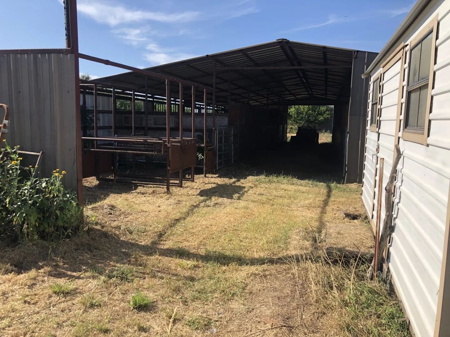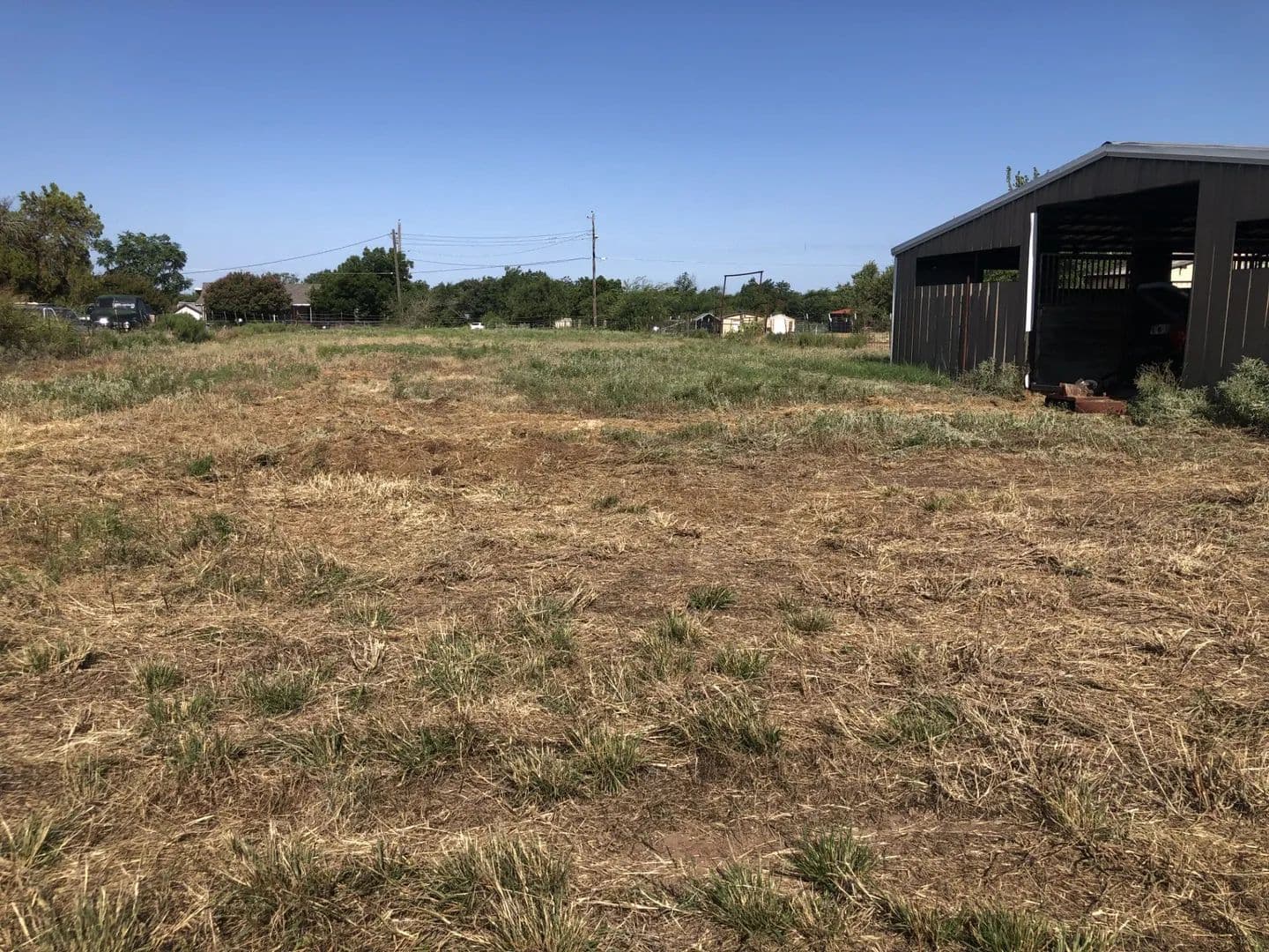 Turnkey horse facility located down a peaceful side road on the edge of town. Perfect place to board your horses and rope or with all utilities available, plug in your lq trailer, or build your dream home! 7.38 acres. Ag exemption. 42x68 barn with 8 large stalls, 4 of which have 30’ pipe runs. Pipe vet stocks for doctoring. Full size roping arena with return alley, boxes and chute. 50’ steel round pen. 16x12 Morton building makes for a watertight saddle house, feed storage, etc. Several traps-pastures to separate animals including steer pen next to arena. All panels stay.