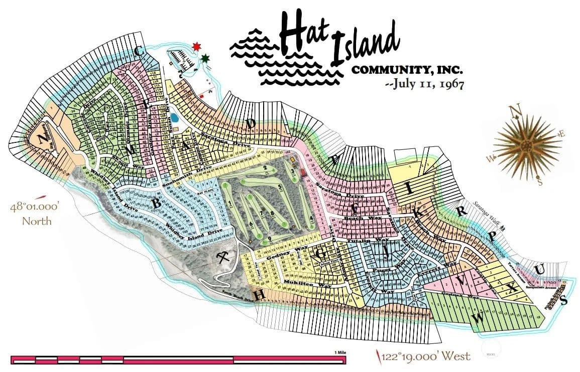 Buildable corner lot w/ amazing views of the Puget Sound, Mt Baker & The Cascade Mtns. This property is partially cleared & percs for a 3 bedroom home & is close to the golf course. Come enjoy the 'Hat Life' on this beautiful private island just 15 minutes West of Everett. You'll access the island by way of your own boat or the passenger only ferry to the private marina. On island you'll experience incredible wild life up close; soaring eagles, orca & gray whales, seals, starfish & more. You'll stay very active w/ island beach walks, USGA golf course, disc golf, pickle ball, kayaking, fishing, crabbing, clamming, community garden, summer concerts on the beach, craft fairs, fishing & golf tournaments. This Pacific Northwest paradise awaits!