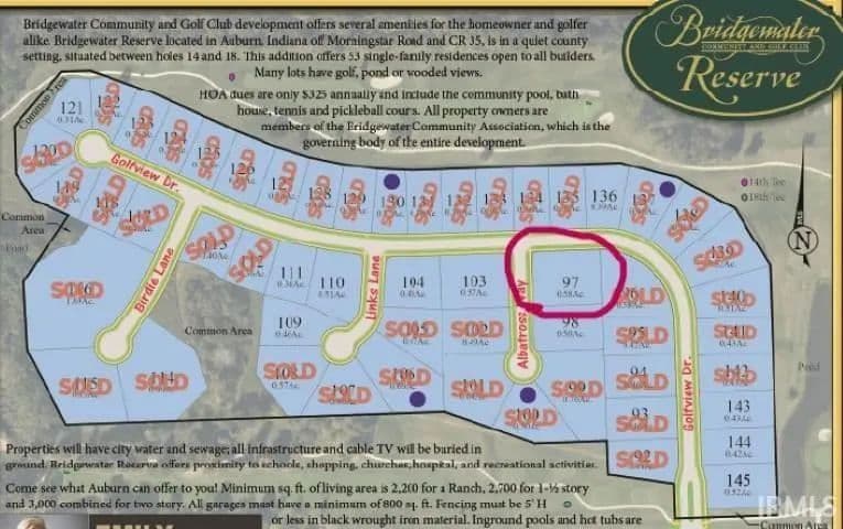 New Lot located within Bridgewater Reserve. One story home minimum sq ft 2,200. 1 1/2 story home min. 2700, Two Story min. 3,000 combined plus a 800 sq ft garage. Low HOA dues with access to a community pool, tennis/pickleball courts.