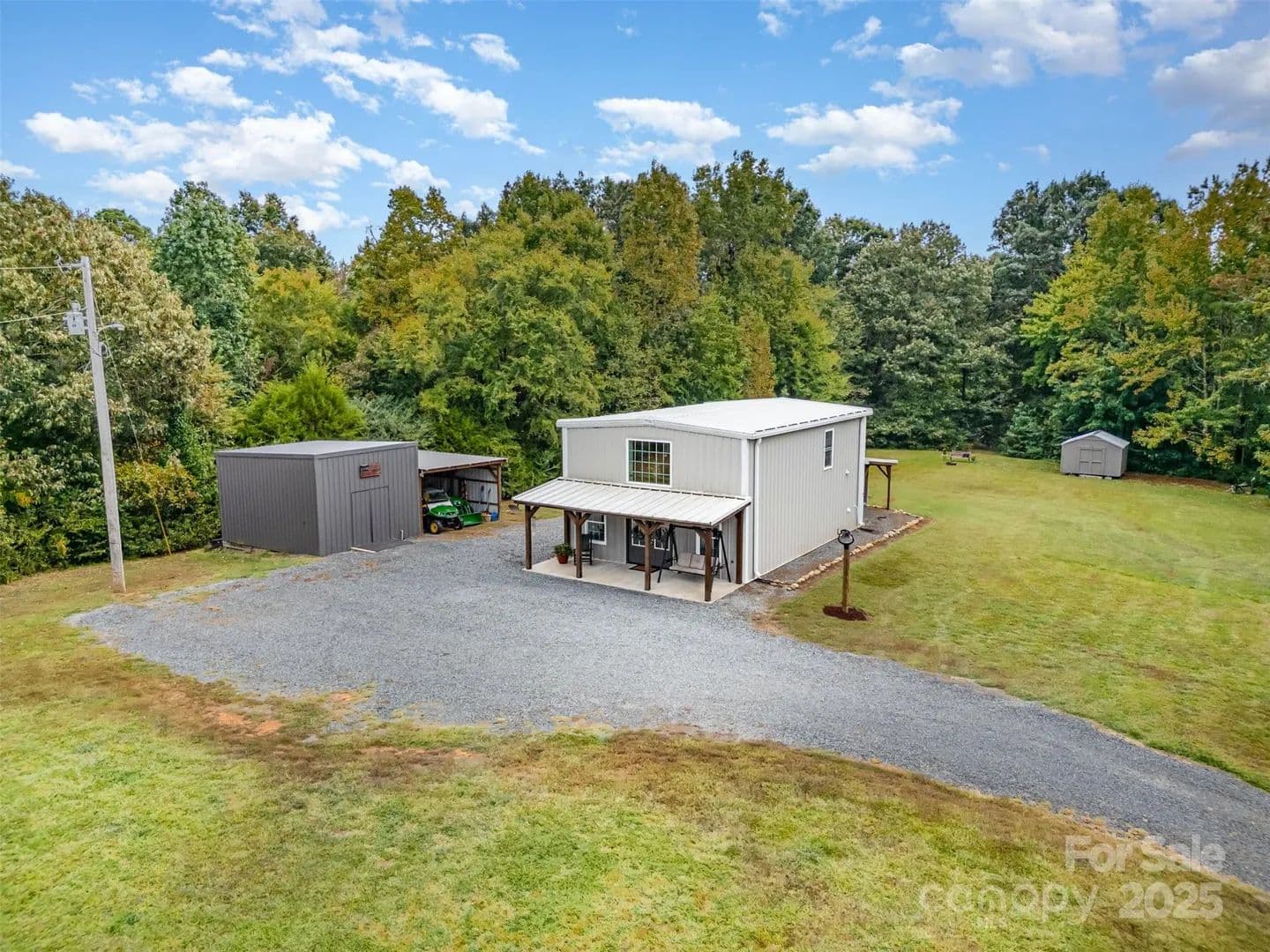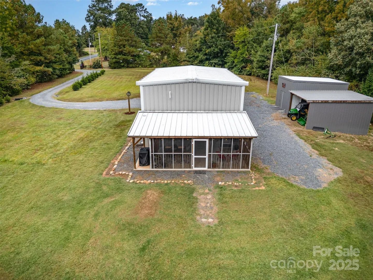 Private barndominium with 8+ acres for your personal slice of heaven in Northern Anson County. This low maintenance barndominium offers commercial grade metal siding and a standing seam steel roof, a rocking chair front porch and a large 12x24, screened in back porch. From the front you can see the peach and apple trees, blackberry, fig and blueberry bushes. Inside features an open main level providing a ton of natural light with living room, oversized eat-in kitchen, a full bath with laundry connections. The upstairs bedroom is open and spacious yet warm and inviting to the living level. Upstairs loft also has a half bath and walk in closet. Enjoy a 320 sq foot storage building standing 12 ft high with electricity and an adjoining tractor shed 14x20 provides ample storage for anything you need. Enjoy your evenings out on the large flat grass yard with a fire pit. Gravel driveway provides lots of space for parking all of your vehicles including campers, RV's, boats or any other recreational toys you may have. There is a King Brand water filter that flushes itself so maintenance free. Don't miss this opportunity to be just over an hour from Uptown Charlotte and Charlotte Douglas Airport with all the comfort of a small community! Short Pleasant drive to Morrow Mountain State Park, Pee Dee River, Badin Lake, Lake Tillery, Blewett Falls Lake, Piney Point Golf Club, Hyatt Farms Shooting Complex and Juneberry Ridge! This property could be used as a Hunting Lodge, Vacation/Getaway Home, or Primary Residence. Please take the opportunity to come experience it!