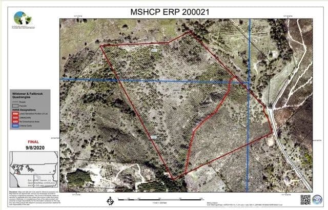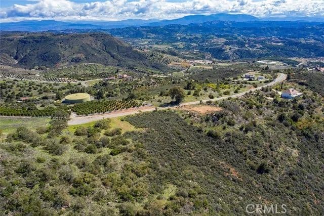 Located at the end of a quiet cul-de-sac in the scenic De Luz area, this stunning 46.45-acre parcel offers rare privacy, breathtaking views, and endless potential. Surrounded by citrus groves, the property sits at the northwest end of Via Escalon and enjoys sweeping panoramic vistas—including views of the Pacific Ocean on clear days. The land features a mix of gentle slopes and steeper hills, ideal for a custom estate, retreat, or expanding your own grove. The northern property line borders the Santa Rosa Plateau Ecological Reserve, adding natural beauty and long-term privacy. This property falls within the criteria area established by the Western Riverside County Multiple Species Habitat Conservation Plan (MSHCP); however, the seller has invested significant time and effort to complete the ERP (Equivalent Residential Project) Application for Single-Family Homes. As a result, the property has already been approved for development on 13.16 acres of its least sensitive land—clearing the way to proceed with obtaining a grading permit for the construction of a single-family residence. Water is available at the street, and a fire hydrant is already in place. Buyer to investigate water benefit zone fees and water meter installation costs. Excellent sun exposure makes it ideal for solar energy and pool heating. Just minutes from Temecula and Fallbrook, this is a rare opportunity for peaceful rural living with modern convenience.