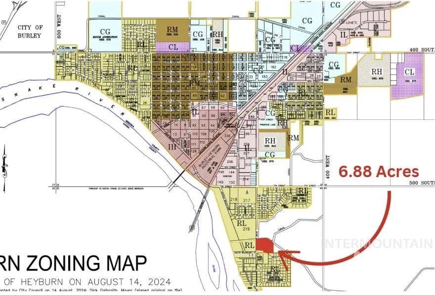 A home and 6.88 acres of potential development land. Located adjacent to The Coty of Heyburn, surrounded by R-2 Zoning and a growing neighborhood. Located between Blue River Estates and Biscotti subdivisions, this property already has water and sewer to the property.