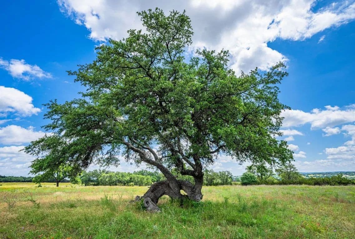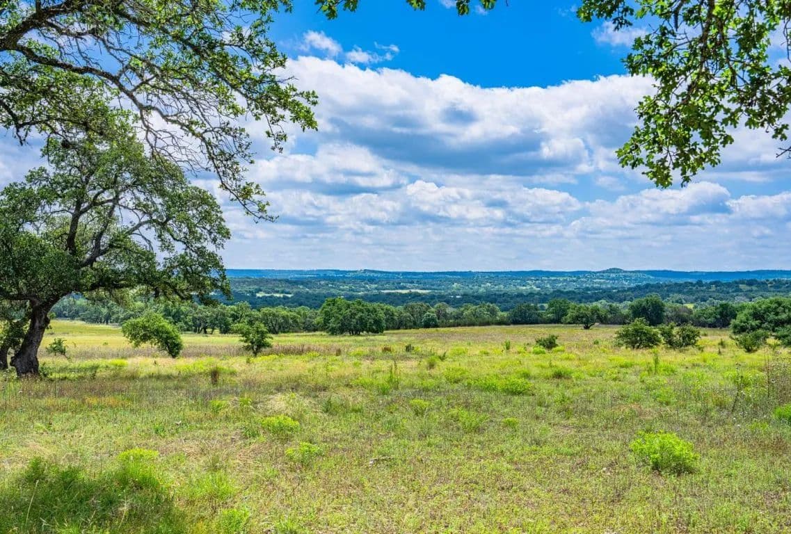 The ranch features breathtaking views, mature oak trees, rolling hills, large open pastures, and wooded areas for wildlife habitat. Wildlife includes whitetail deer, axis, turkey, dove, and hogs—making it a hunter’s paradise. Approximately half of the ranch is cleared while the other half remains natural.