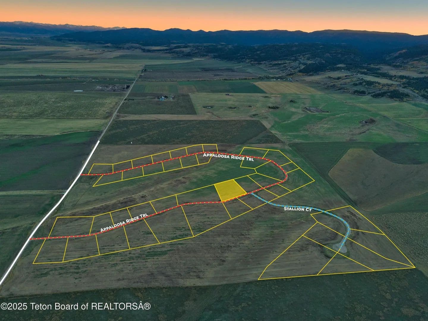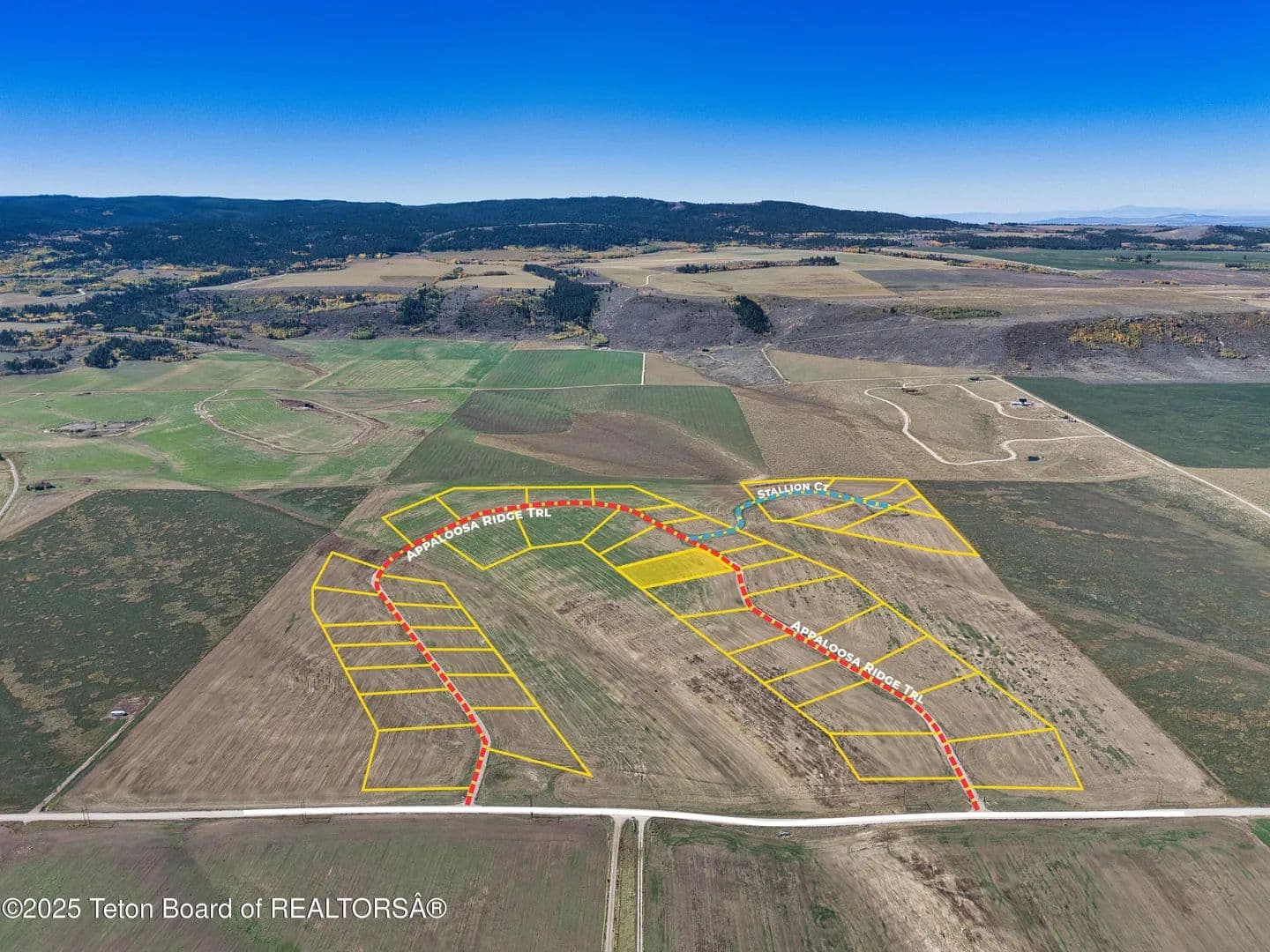 Welcome to Appaloosa Ridge, an exquisite enclave nestled in the heart of the breathtaking Teton Valley, Idaho. This premier community offers exclusive homesites ranging from 1 to 2.5 acres, each meticulously positioned on rolling hills that provide unparalleled vistas of the majestic Teton and Big Hole Mountain Ranges. Imagine waking up to the sun rising over the Tetons, casting a golden glow on the shimmering snow-capped peaks, or ending your day with a stunning sunset backdrop that paints the sky in hues of pink and orange. Theses parcels provide the perfect canvas for building your dream home, where nature and luxury coexist harmoniously. Each homesite is thoughtfully designed to offer privacy while maintaining a sense of community. The rolling topography of the land enhances the natural beauty and offers diverse landscaping opportunities, allowing for creative architectural designs that embrace the contour of the land.A defining feature of Appaloosa Ridge is the abundant open space thoughtfully integrated into the community layout. These preserved areas not only enhance the natural beauty of the landscape but also maintain unobstructed view corridors, ensuring that every home can enjoy the sweeping panoramas of the Teton and Big Hole Mountains. These open spaces provide a tranquil environment for residents, fostering a connection with nature and offering opportunities for outdoor recreation and relaxation. Appaloosa Ridge is more than just a place to live; it's a lifestyle. The community is surrounded by a plethora of outdoor activities, from world-class skiing, hiking, and fishing, to exploring the nearby national parks. Embrace the serene lifestyle that Teton Valley offers, with crisp mountain air, sweeping landscapes, and a close-knit community that appreciates the finer things in life. Conveniently located near charming towns and modern amenities yet sufficiently tucked away to provide a peaceful retreat, Appaloosa Ridge is the ideal location for those seeking a balance between adventure and tranquility. Don't miss this opportunity to own a slice of paradise and create a legacy home that can be treasured for generations to come. Come and experience the captivating beauty of Appaloosa Ridgewhere your dream home awaits amidst the splendor of Idaho's most iconic landscapes, all while enjoying the serenity provided by abundant open space.
