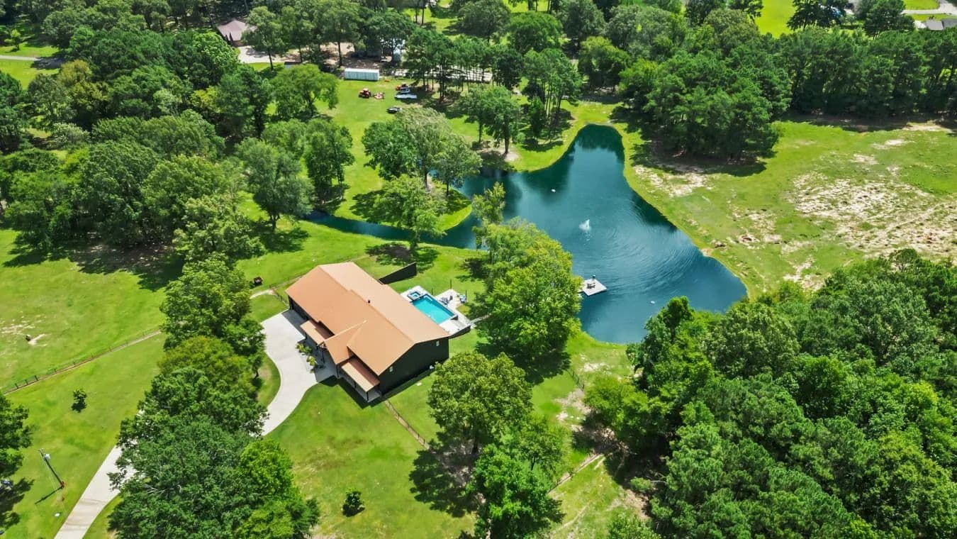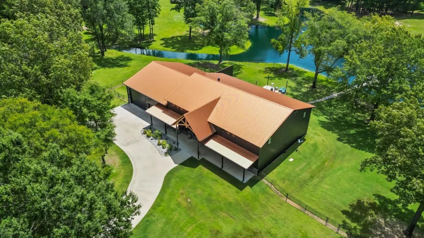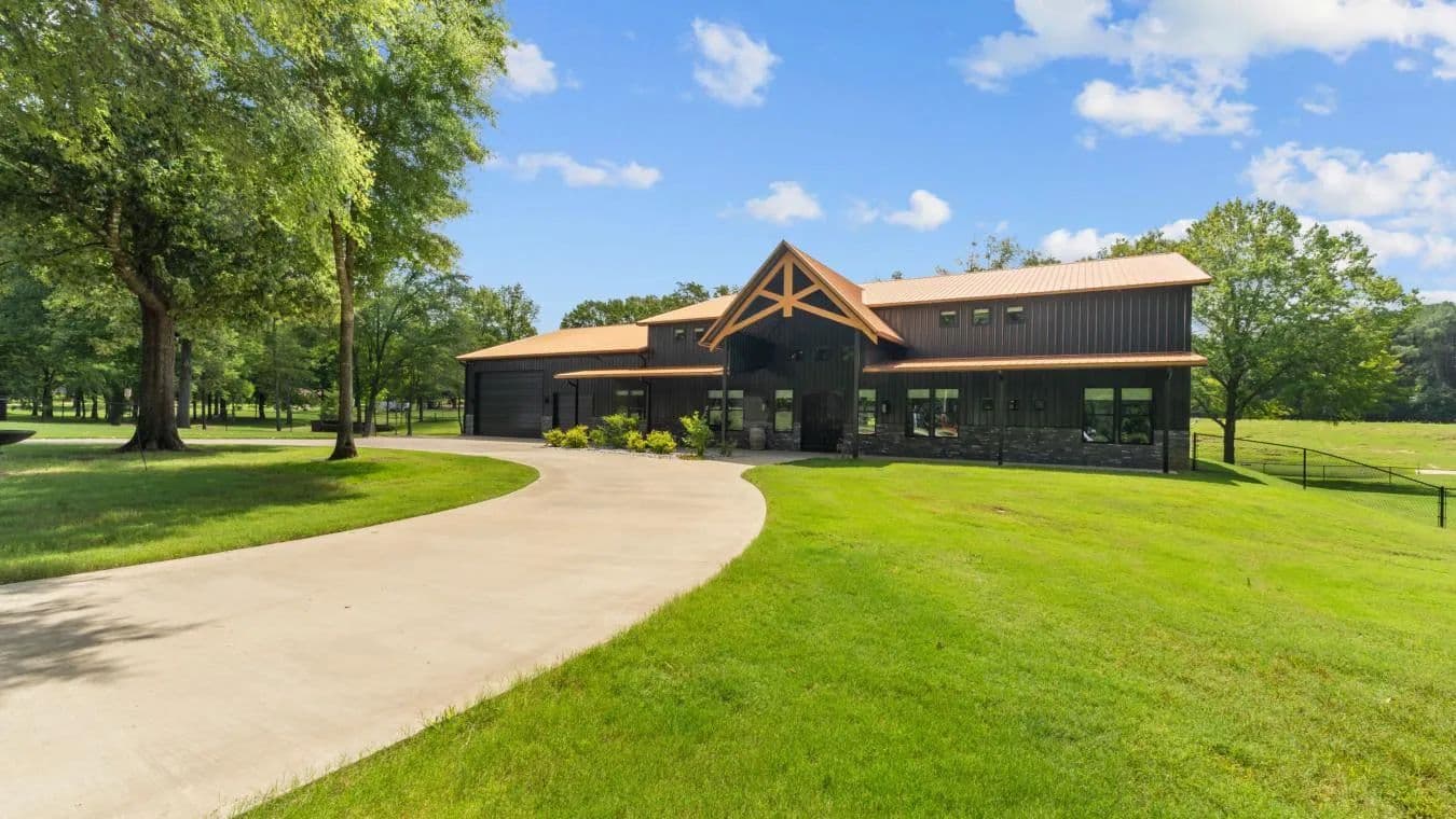 Welcome to 830 Kelly Rd, Texarkana, TX a once-in-a-lifetime estate where modern luxury meets Texas grit on 50 breathtaking acres. Built in 2021, this 7,395-square-foot custom barndominium is a bold fusion of sleek design and country lifestyle. From the striking black metal exterior and expansive ceilings to the private pond with fountain and resort-style pool, every feature has been meticulously designed for both comfort and wow factor. Inside, this estate offers three oversized bedrooms and four spa-worthy bathrooms, finished with luxe details like walk-in showers and a sculptural soaking tub. The gourmet kitchen is a showpiece, featuring a waterfall quartz island, double ovens, custom wood beams, and a massive walk-in pantry fit for any chef. The open-concept living room stuns with floor-to-ceiling windows, flooding the space with natural light and offering sweeping views of your private acreage. You'll also find a dedicated game room, a full home gym, and a secure, hidden safe room all under one roof. Step outside and discover your own personal resort: a sparkling pool and spa, expansive lounge and firepit area, and a commercial-grade shop with lift ideal for heavy-duty work or serious hobbies. And yes, the longhorns grazing the pasture come with the property! Whether you're looking for a private family estate, an income-generating ranch retreat, or the ultimate entertainer's haven, 830 Kelly Rd is your Texas legend in the making. Schedule your private showing today because properties like this don't wait.