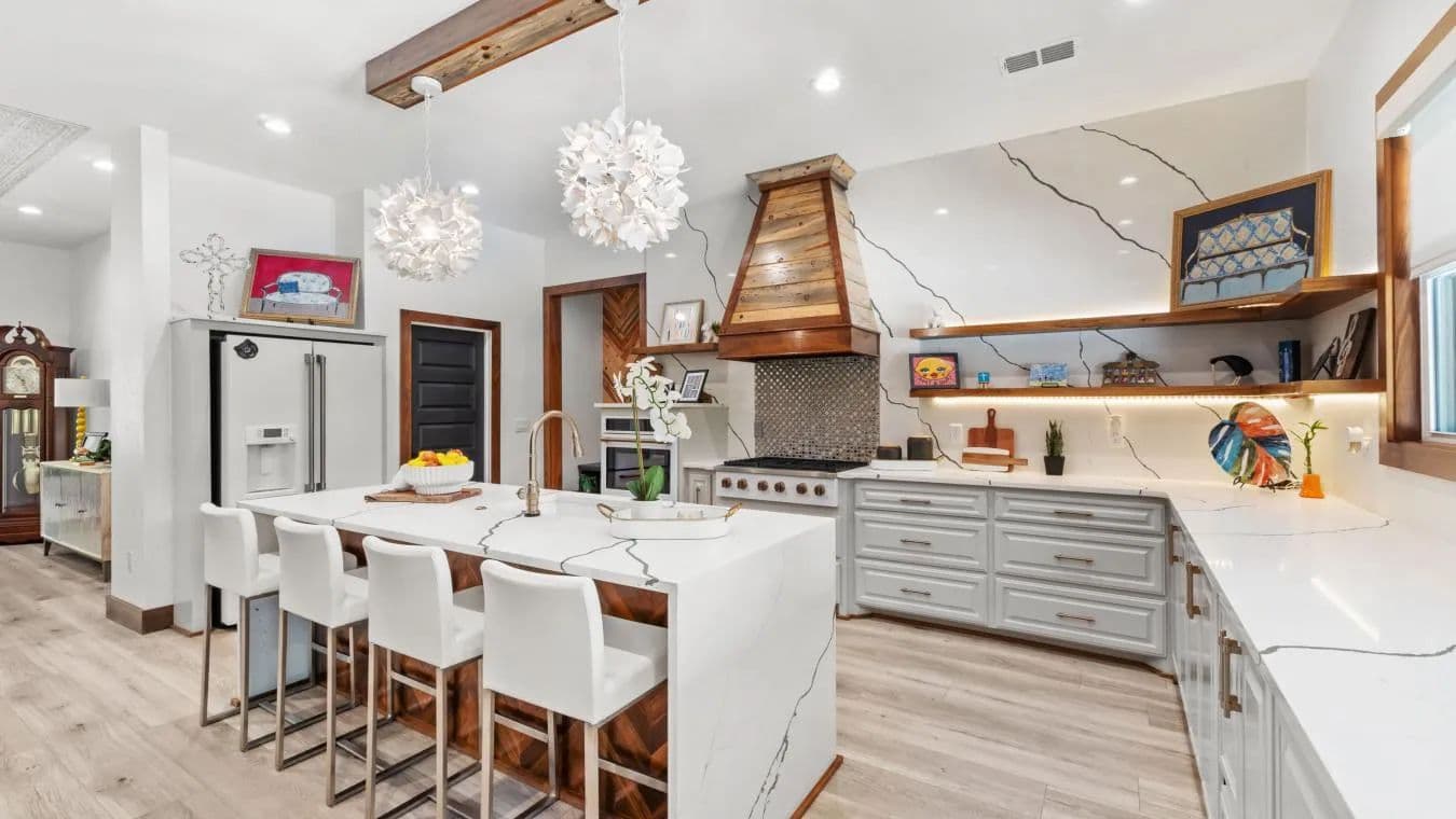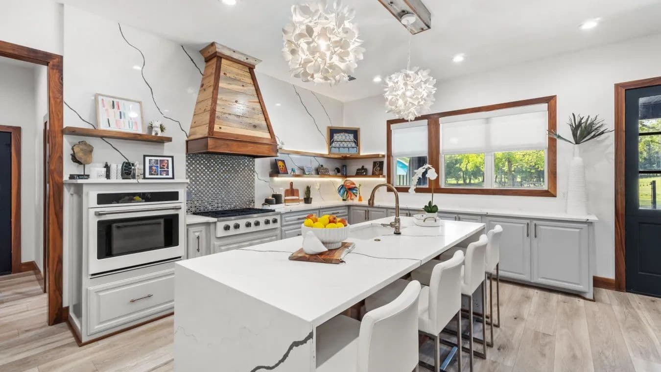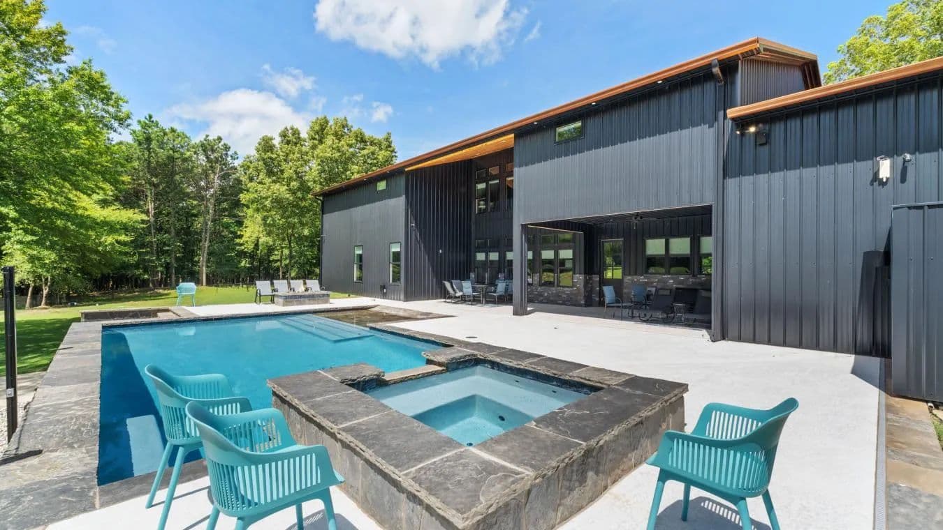 Welcome to 830 Kelly Rd, Texarkana, TX a once-in-a-lifetime estate where modern luxury meets Texas grit on 50 breathtaking acres. Built in 2021, this 7,395-square-foot custom barndominium is a bold fusion of sleek design and country lifestyle. From the striking black metal exterior and expansive ceilings to the private pond with fountain and resort-style pool, every feature has been meticulously designed for both comfort and wow factor. Inside, this estate offers three oversized bedrooms and four spa-worthy bathrooms, finished with luxe details like walk-in showers and a sculptural soaking tub. The gourmet kitchen is a showpiece, featuring a waterfall quartz island, double ovens, custom wood beams, and a massive walk-in pantry fit for any chef. The open-concept living room stuns with floor-to-ceiling windows, flooding the space with natural light and offering sweeping views of your private acreage. You'll also find a dedicated game room, a full home gym, and a secure, hidden safe room all under one roof. Step outside and discover your own personal resort: a sparkling pool and spa, expansive lounge and firepit area, and a commercial-grade shop with lift ideal for heavy-duty work or serious hobbies. And yes, the longhorns grazing the pasture come with the property! Whether you're looking for a private family estate, an income-generating ranch retreat, or the ultimate entertainer's haven, 830 Kelly Rd is your Texas legend in the making. Schedule your private showing today because properties like this don't wait.