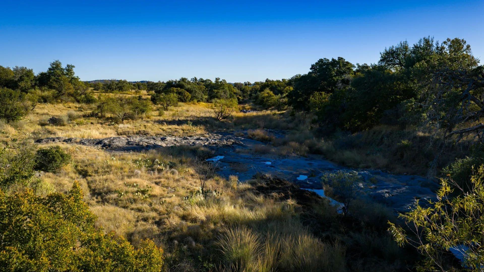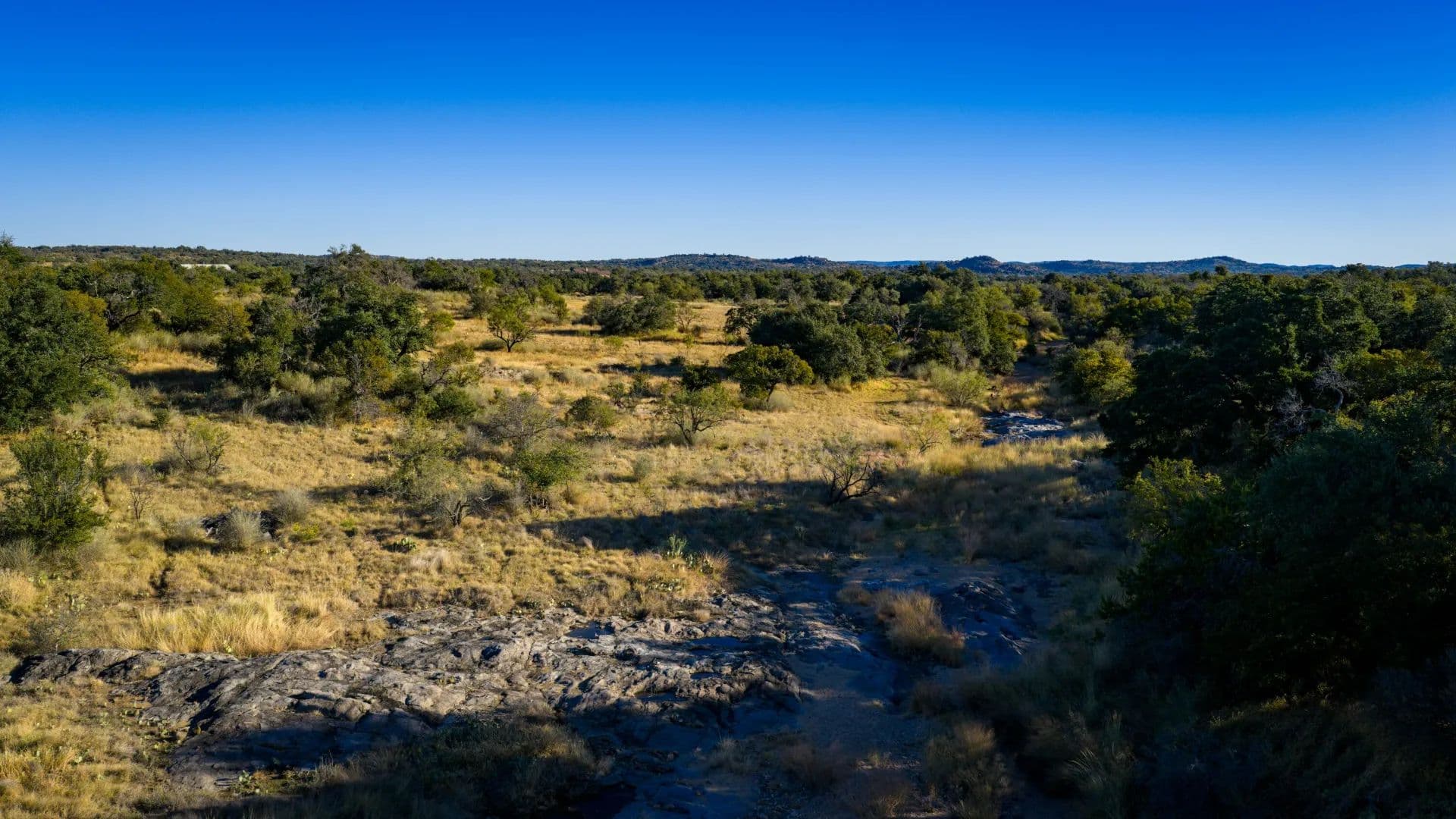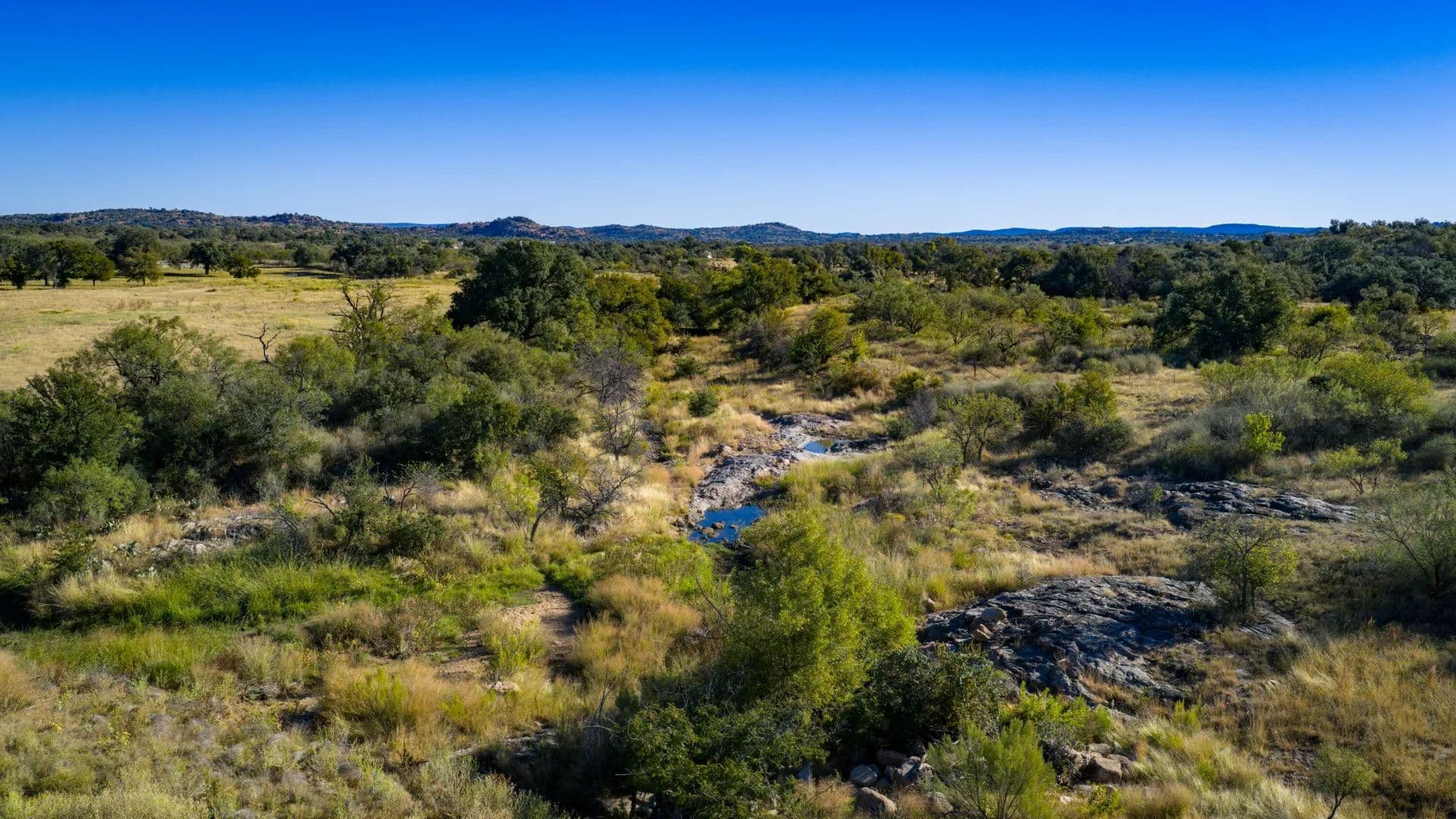 The Wright Ranch showcases a captivating mix of large oak bottoms, Mesquite savannas, and granite rock outcroppings, providing a buyer with a truly diverse ranch. Keener Branch spans approximately 4,911 linear feet through the property, with multiple sections holding water year-round. There is a +-17 acre pasture on the ranch that a buyer could cultivate hay, or leave for native grazing. A strong internal road system connects key areas of the property navigating you from the house, along the creek, then up to the highest point of elevation giving a breathtaking view of the entire ranch and Enchanted Rock. Topography of the ranch ranges from 1300Ft to 1500Ft of elevation.