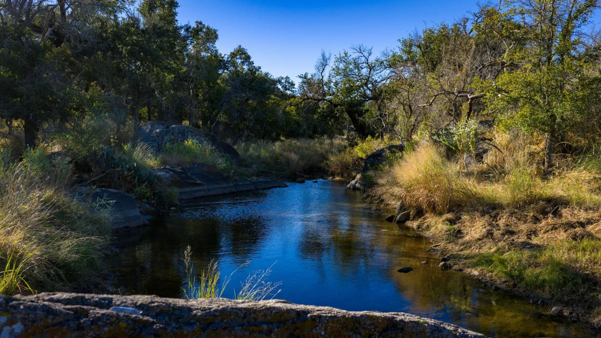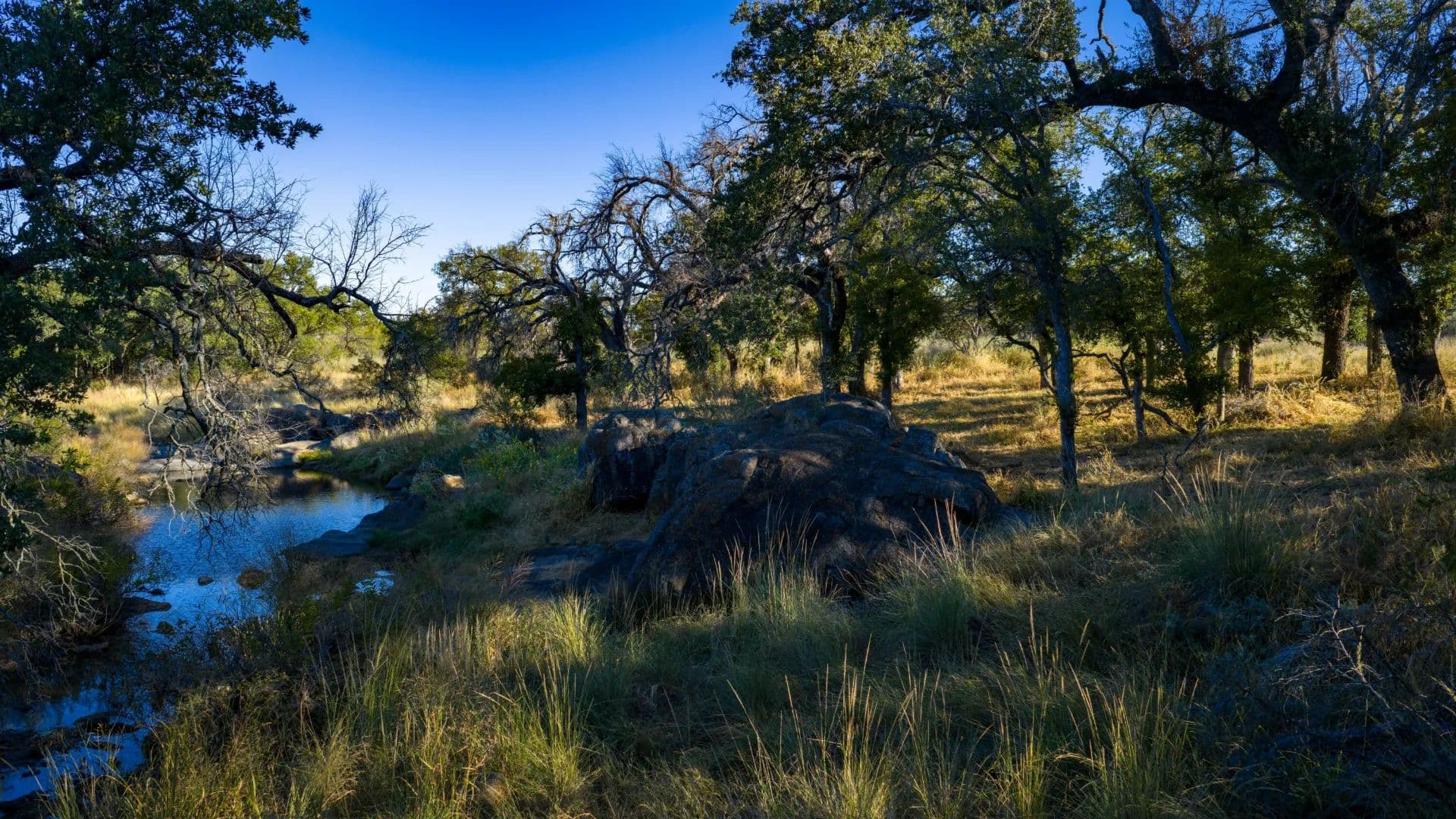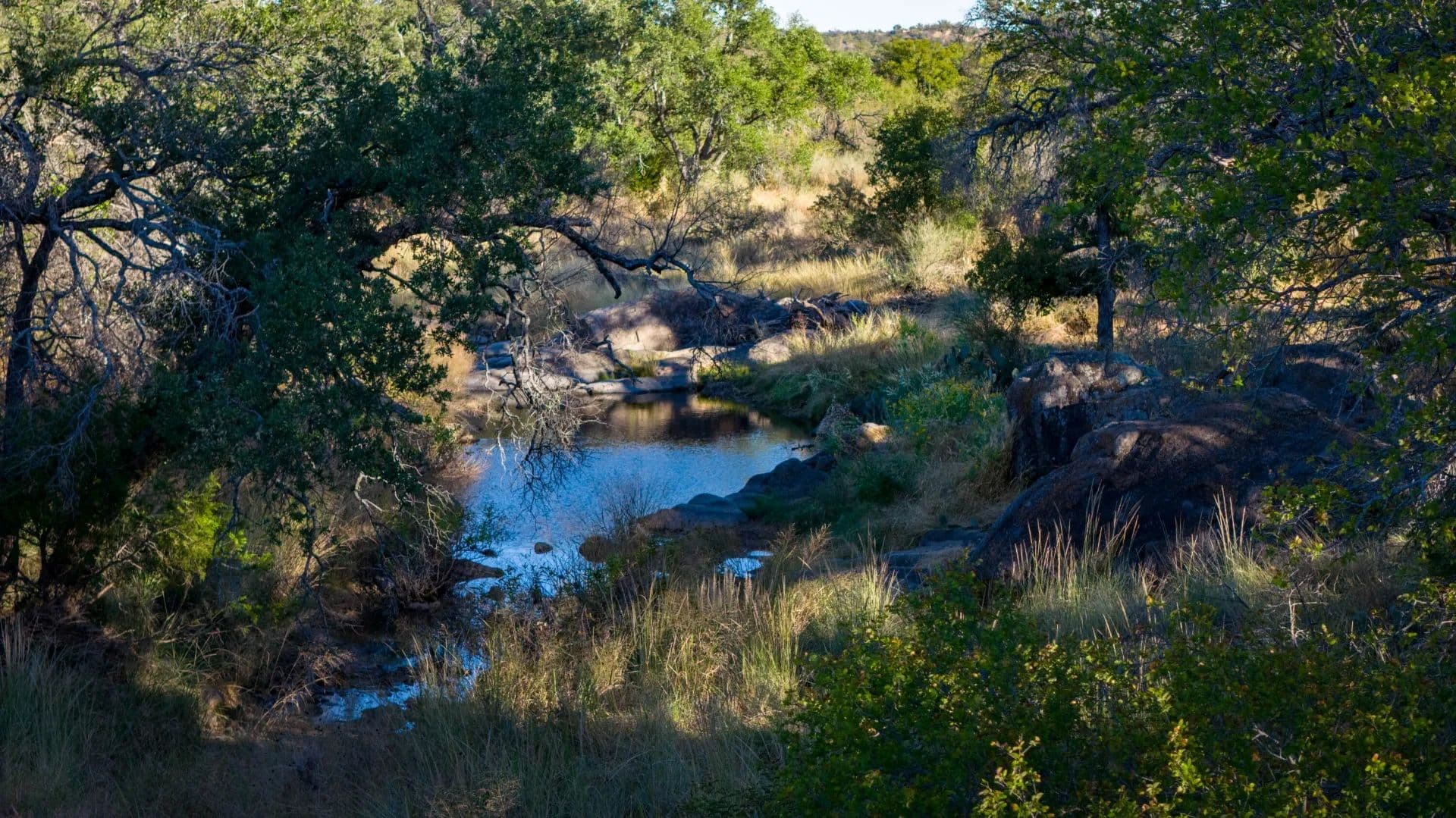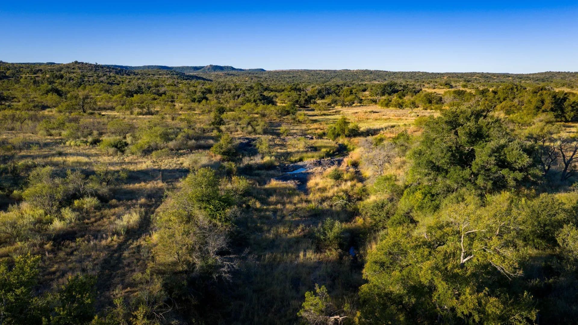 The Wright Ranch showcases a captivating mix of large oak bottoms, Mesquite savannas, and granite rock outcroppings, providing a buyer with a truly diverse ranch. Keener Branch spans approximately 4,911 linear feet through the property, with multiple sections holding water year-round. There is a +-17 acre pasture on the ranch that a buyer could cultivate hay, or leave for native grazing. A strong internal road system connects key areas of the property navigating you from the house, along the creek, then up to the highest point of elevation giving a breathtaking view of the entire ranch and Enchanted Rock. Topography of the ranch ranges from 1300Ft to 1500Ft of elevation.