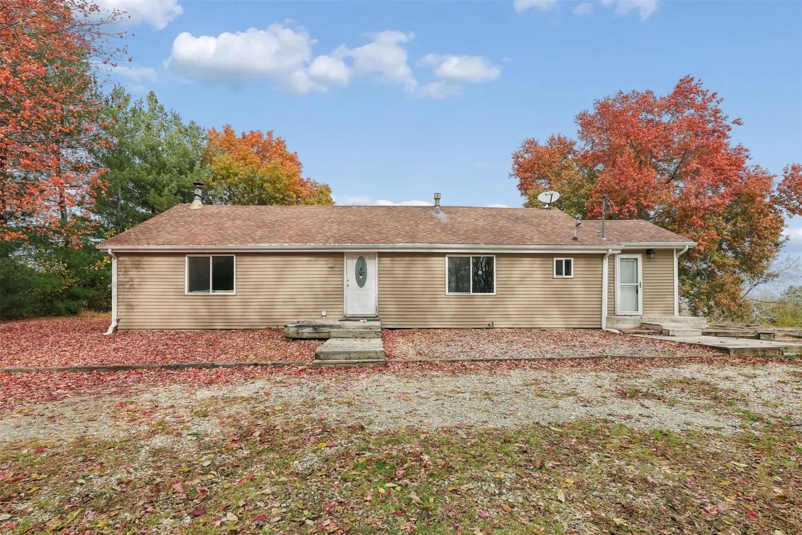 Easy 30-minute commute to Des Moines/WDM. This 1,200 sq ft ranch home offers 3 bedrooms and 1.5 baths with new vinyl siding and roof in 2015. Interior features include an updated kitchen and a fenced-in yard. Property sits on 9.5 acres with a newer shed and a 2-car detached garage. Enjoy outdoor living with a 16x20 above-ground pool and hot tub. The 40x50 outbuilding includes a working kitchen/bar area and bathroom—ideal for entertaining, hobby space, or shop use. Plenty of room for animals, gardening, and outdoor recreation. Country living with privacy and space to spread out, plus a short commute back to the Metro.