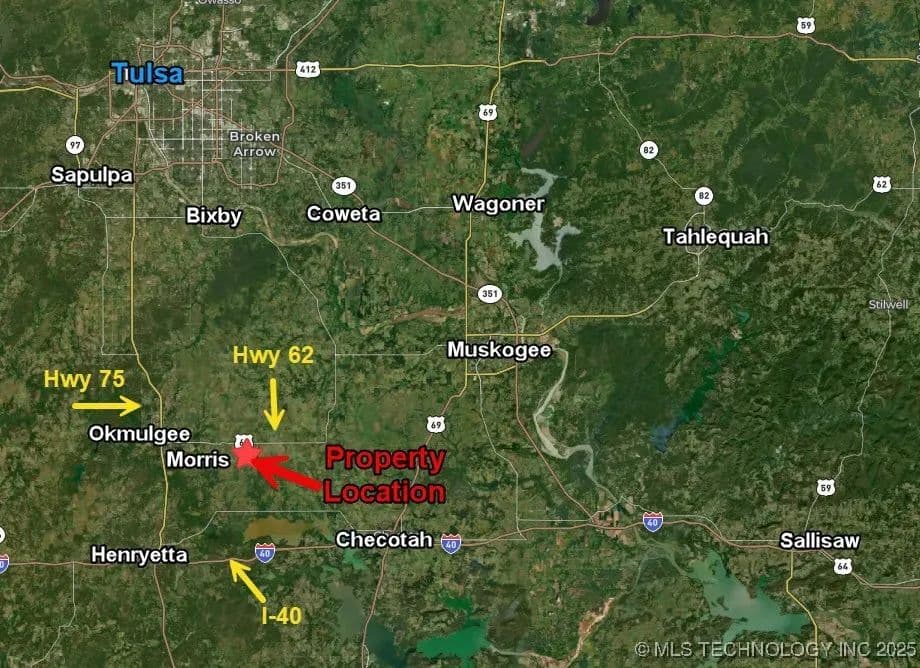 170 +/- ACRES NEAR MORRIS, OK – EXCELLENT SETUP FOR RANCHING OR WIDE-OPEN COUNTRY LIVING! Whether you’re looking to establish a working cattle operation or enjoy expansive Oklahoma countryside, this 170 +/- acre tract near Morris offers the space, layout, and location to make it happen. Located less than 10 miles from Okmulgee, the property provides easy access to Highway 62, Highway 75, and I-40—ideal for daily travel, hauling livestock, or commuting with ease. The land features mostly level, highly usable terrain with a pleasing mix of open grazing pasture and scattered mature trees that offer natural shade for livestock and wildlife, as well as attractive potential homesites. Multiple ponds provide dependable water sources and scenic views, while a creek meanders through the property, enhancing both the character and practicality of the land. With ample room to build a custom home, traditional farmhouse, or fully functional ranch headquarters, this property delivers versatility, beauty, and opportunity all in one. Large acreage tracts like this in Okmulgee County don’t come along often—schedule your showing today and explore the possibilities this impressive piece of land has to offer. Call today for details!