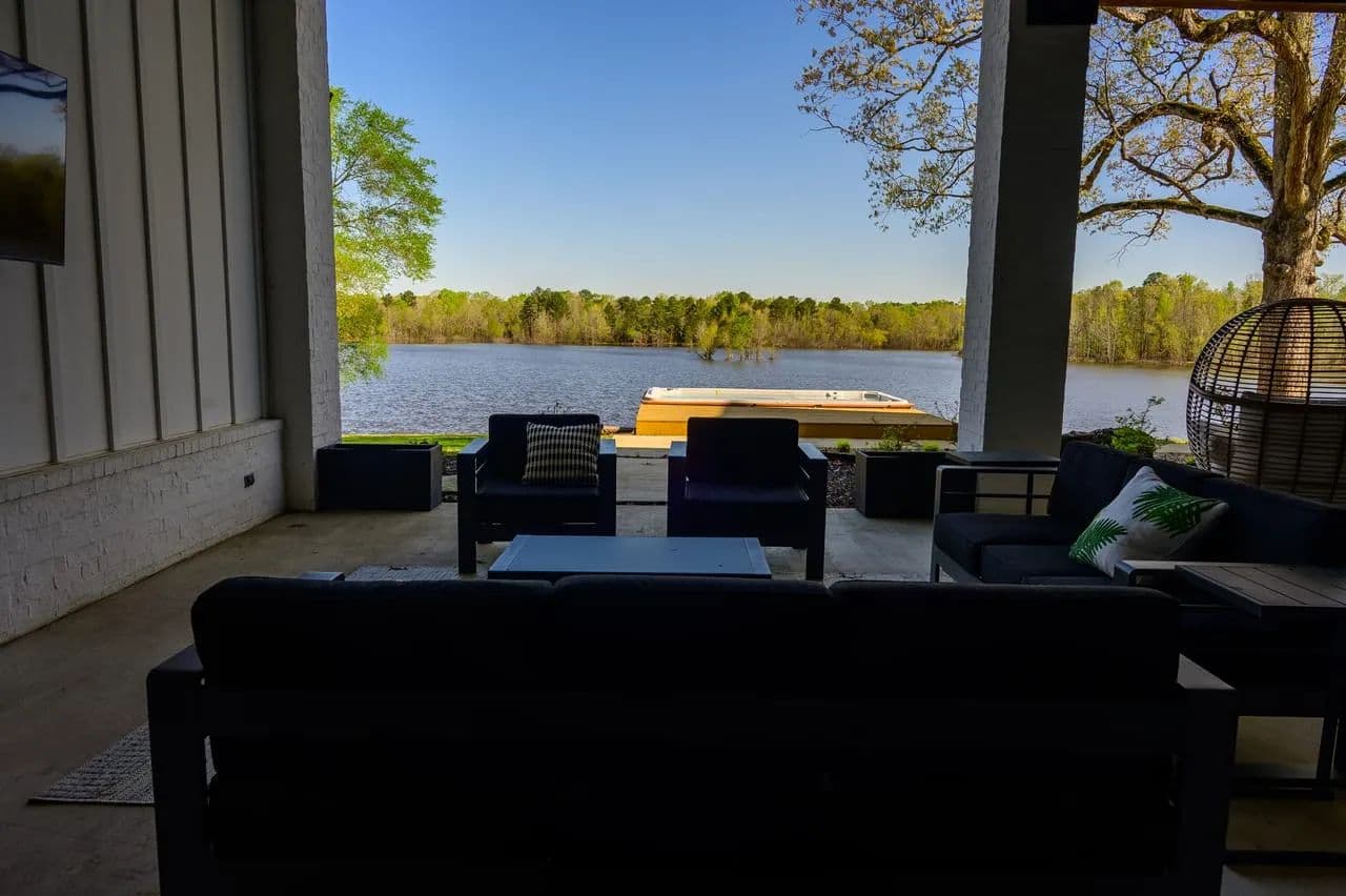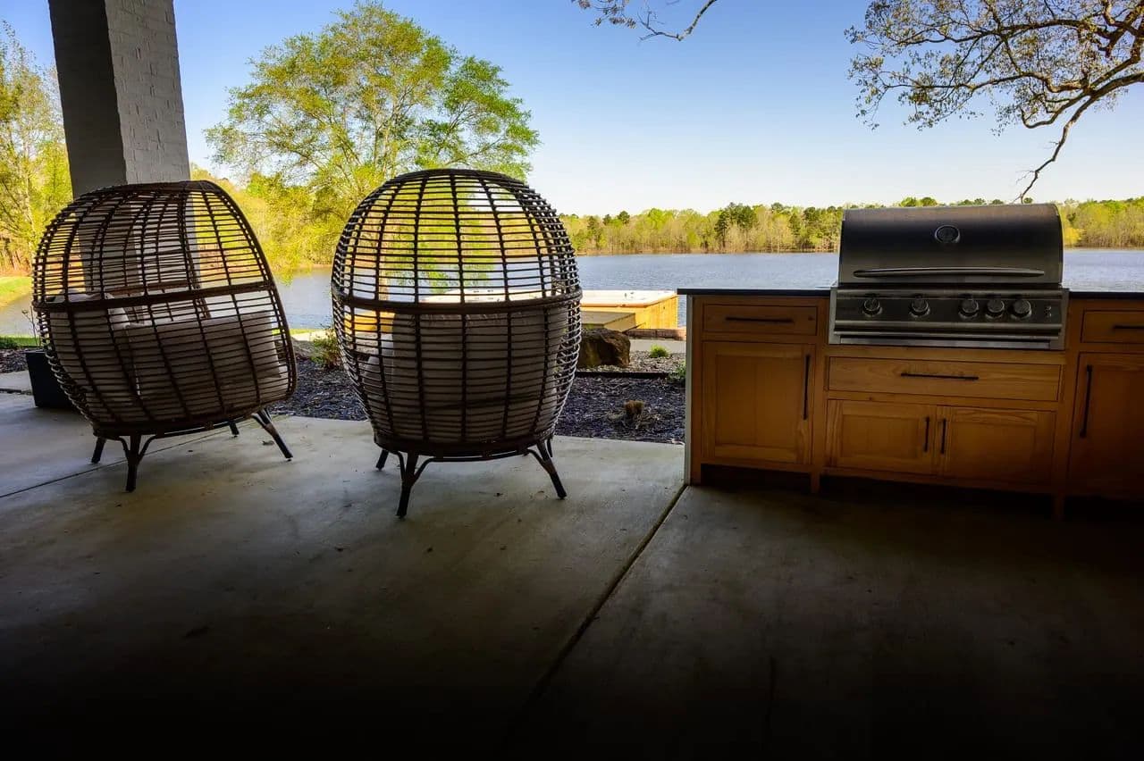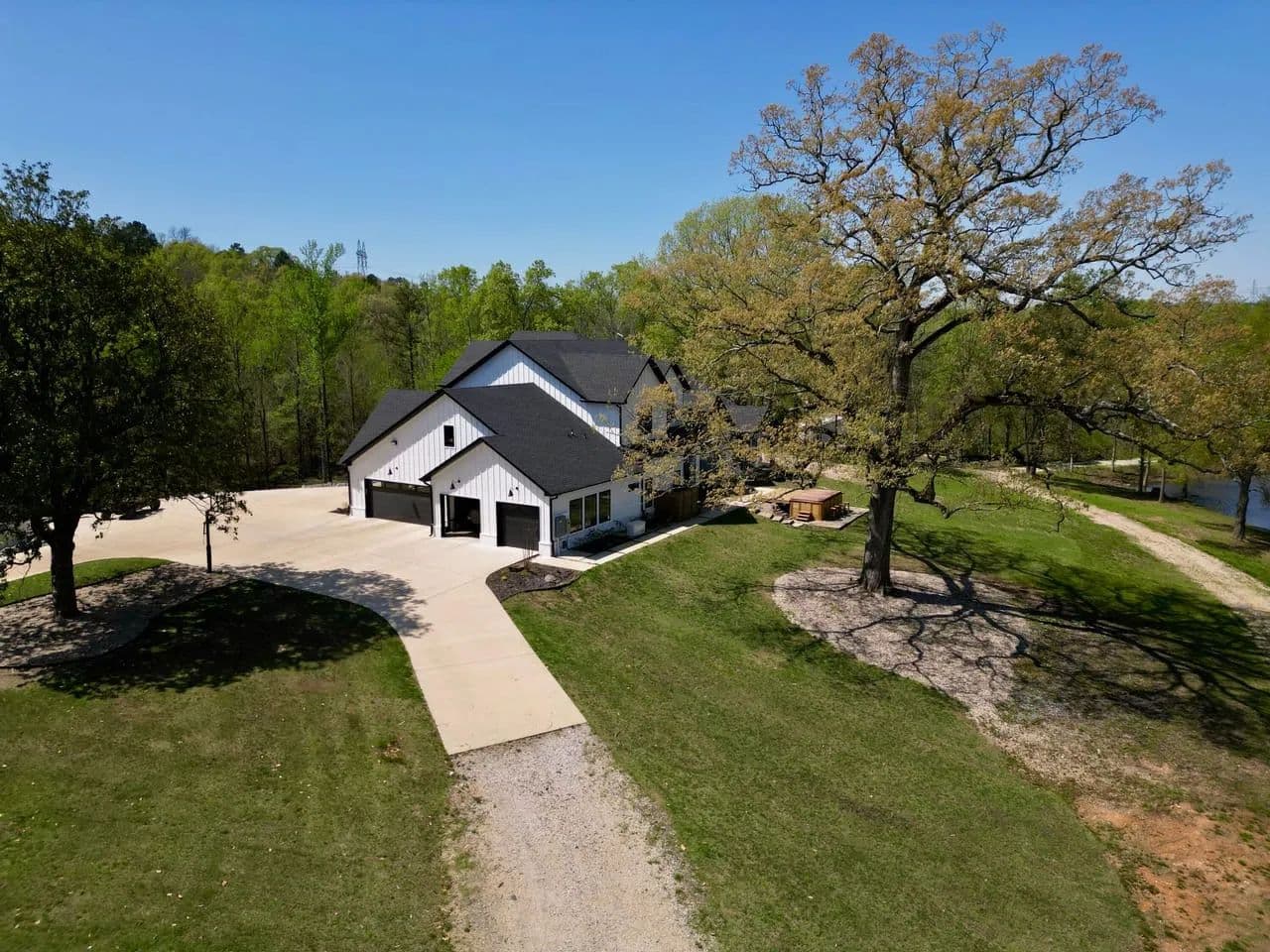 The primary home is 5810 sq. ft. in size with 6 bedrooms, 5 1/2 baths, office, beautiful kitchen with Kitchen Aid top end appliances. A huge walk in pantry, extra large laundry room, 4 car garage with a safe room. Upstairs there is a large room in the middle of 4 bedrooms each with their own bathrooms. This is a quality built home with all the icing. The views of the lake are simply beautiful. Sit on your covered back patio while cooking on the outdoor kitchen or hop in the hot tub and watch for the local eagle to make an appearance.