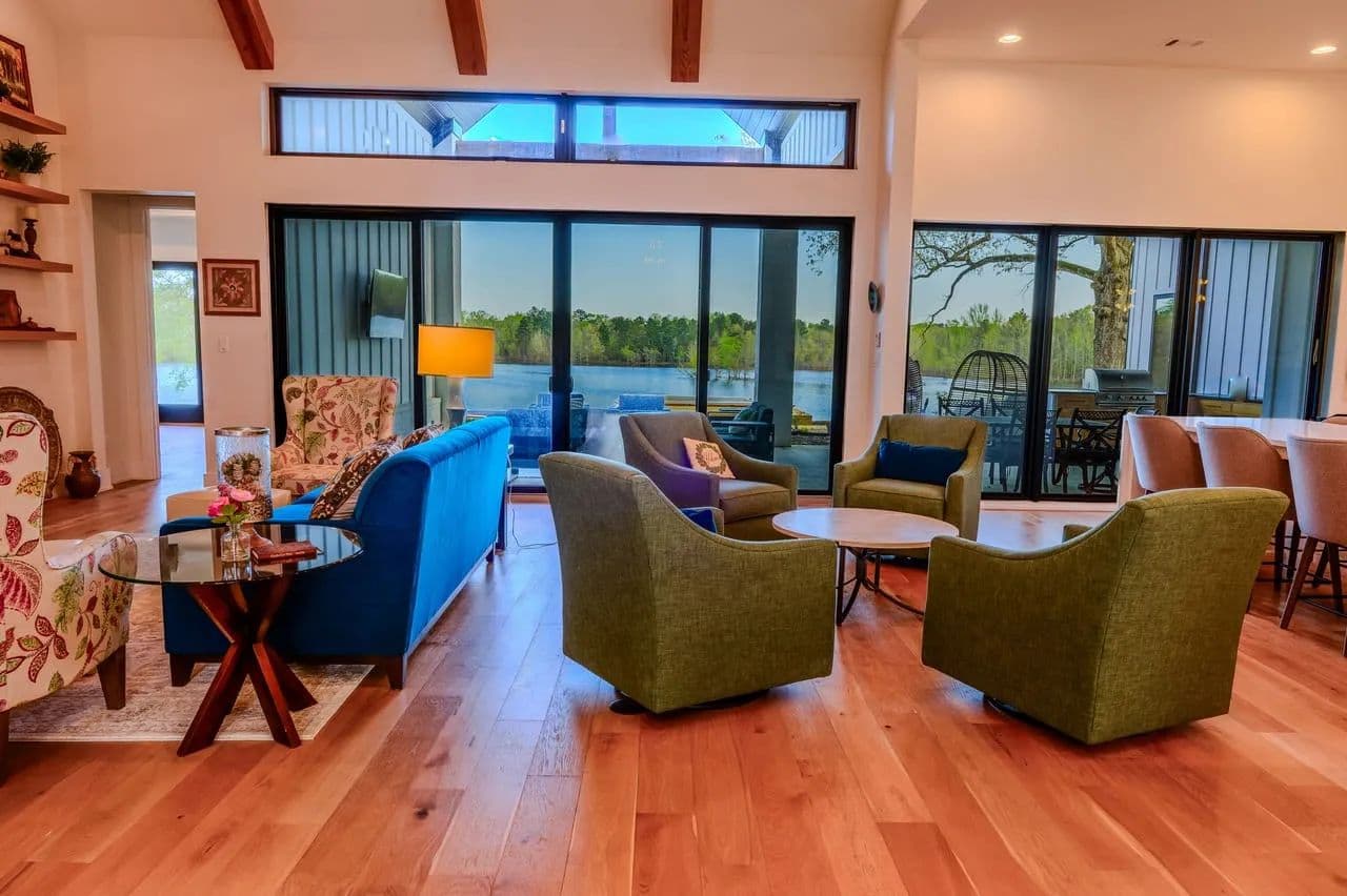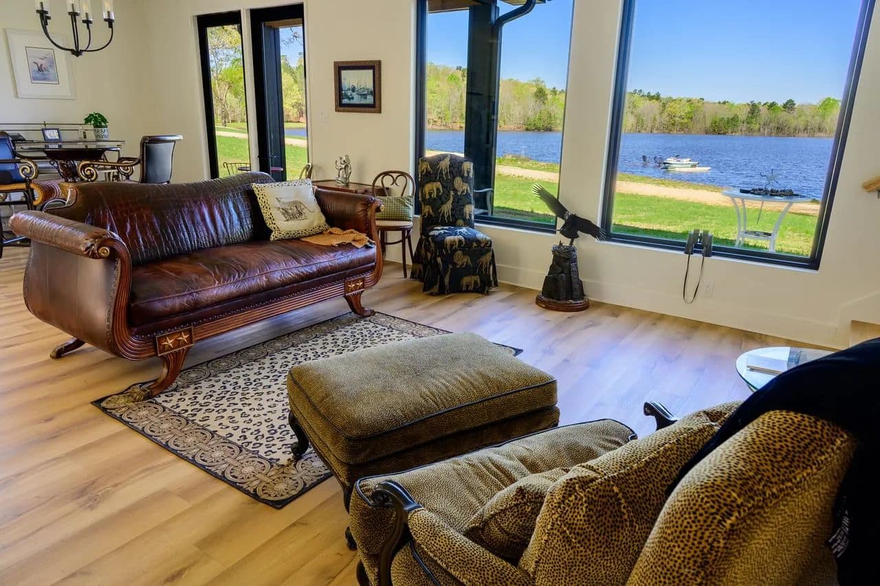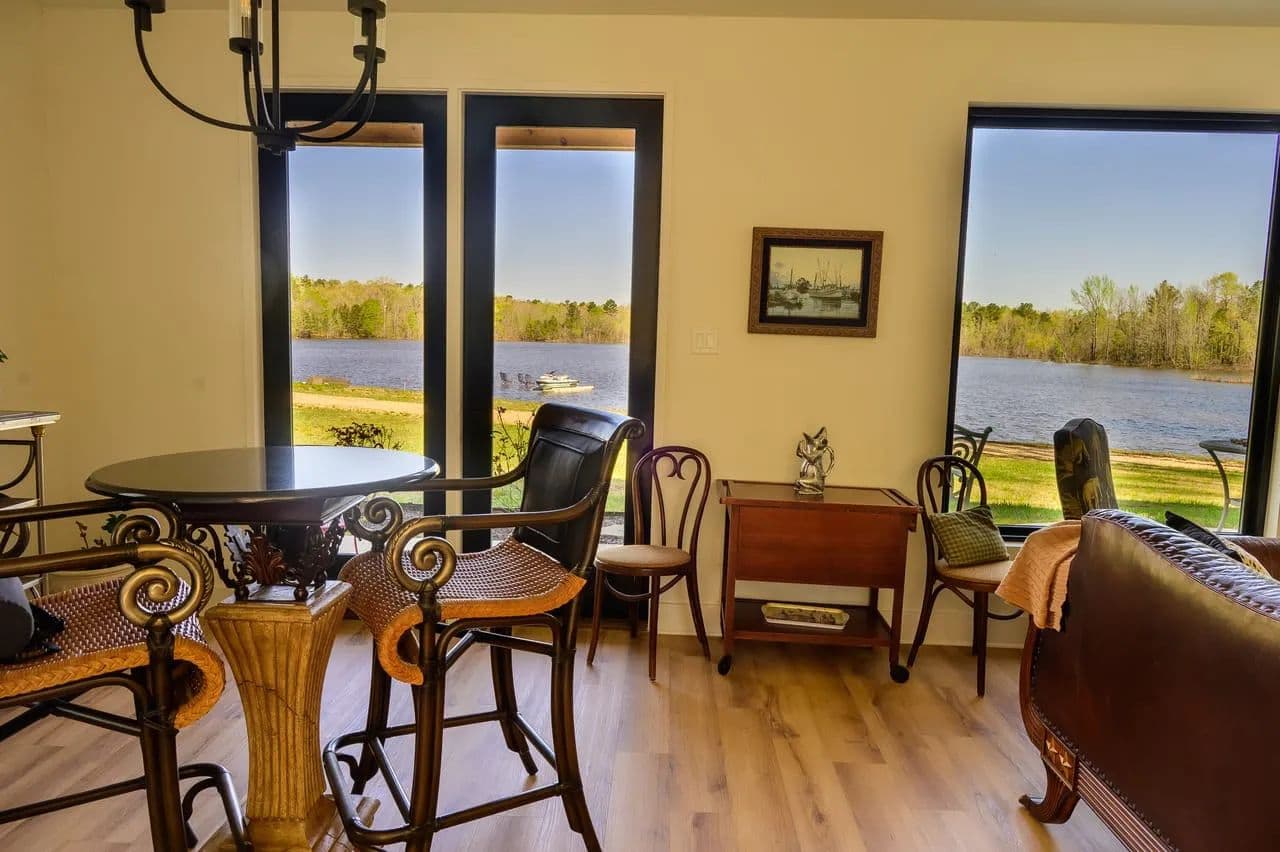 The primary home is 5810 sq. ft. in size with 6 bedrooms, 5 1/2 baths, office, beautiful kitchen with Kitchen Aid top end appliances. A huge walk in pantry, extra large laundry room, 4 car garage with a safe room. Upstairs there is a large room in the middle of 4 bedrooms each with their own bathrooms. This is a quality built home with all the icing. The views of the lake are simply beautiful. Sit on your covered back patio while cooking on the outdoor kitchen or hop in the hot tub and watch for the local eagle to make an appearance.