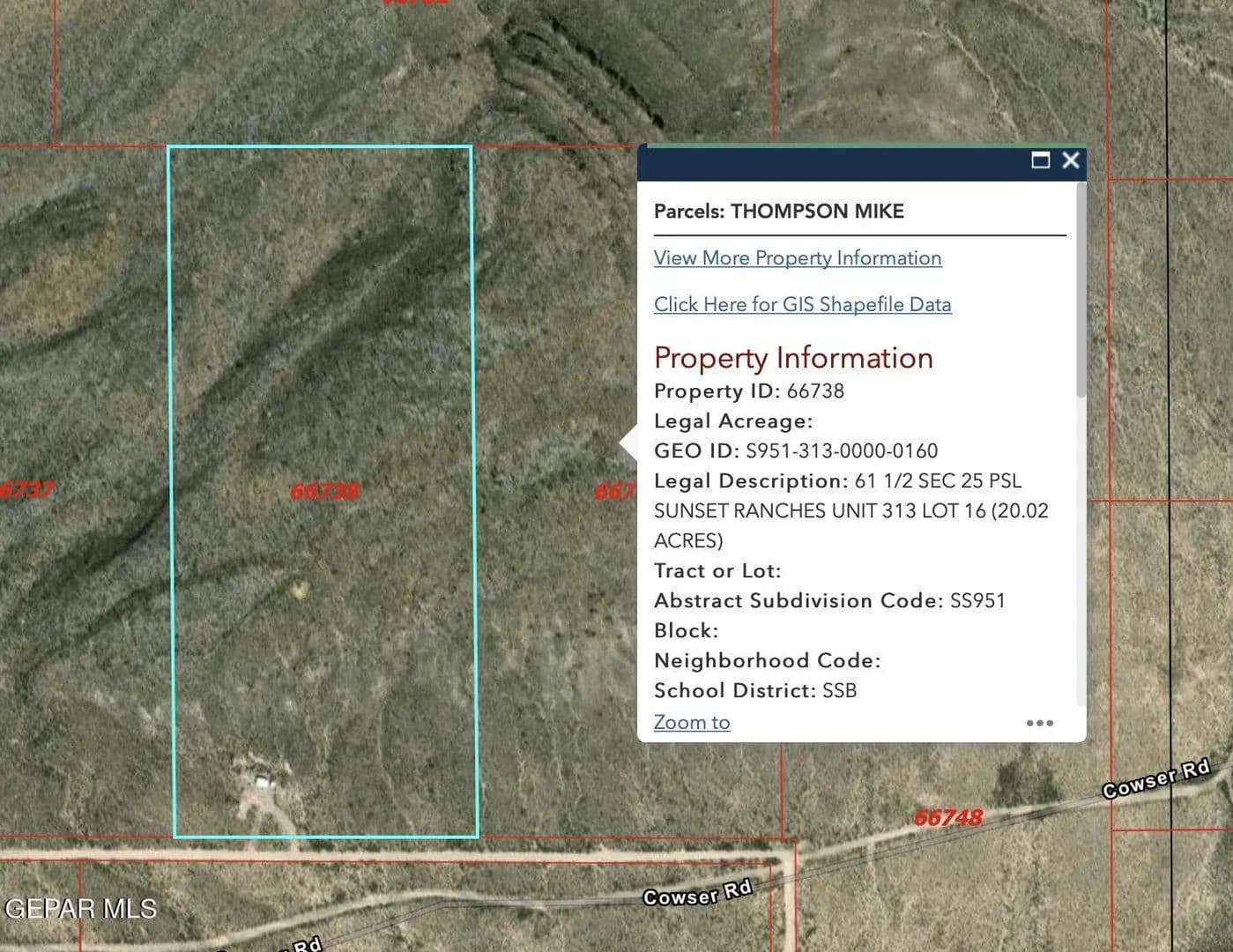 Welcome to this serene desert getaway - this property includes a septic tank & building on 20 acres including some mountainous terrain. With some of the property including the mountainside, neighbors have seen mule deer and Aoudad cross this property! Use the mountain elevation to easily collect rain water instead of hauling it in.